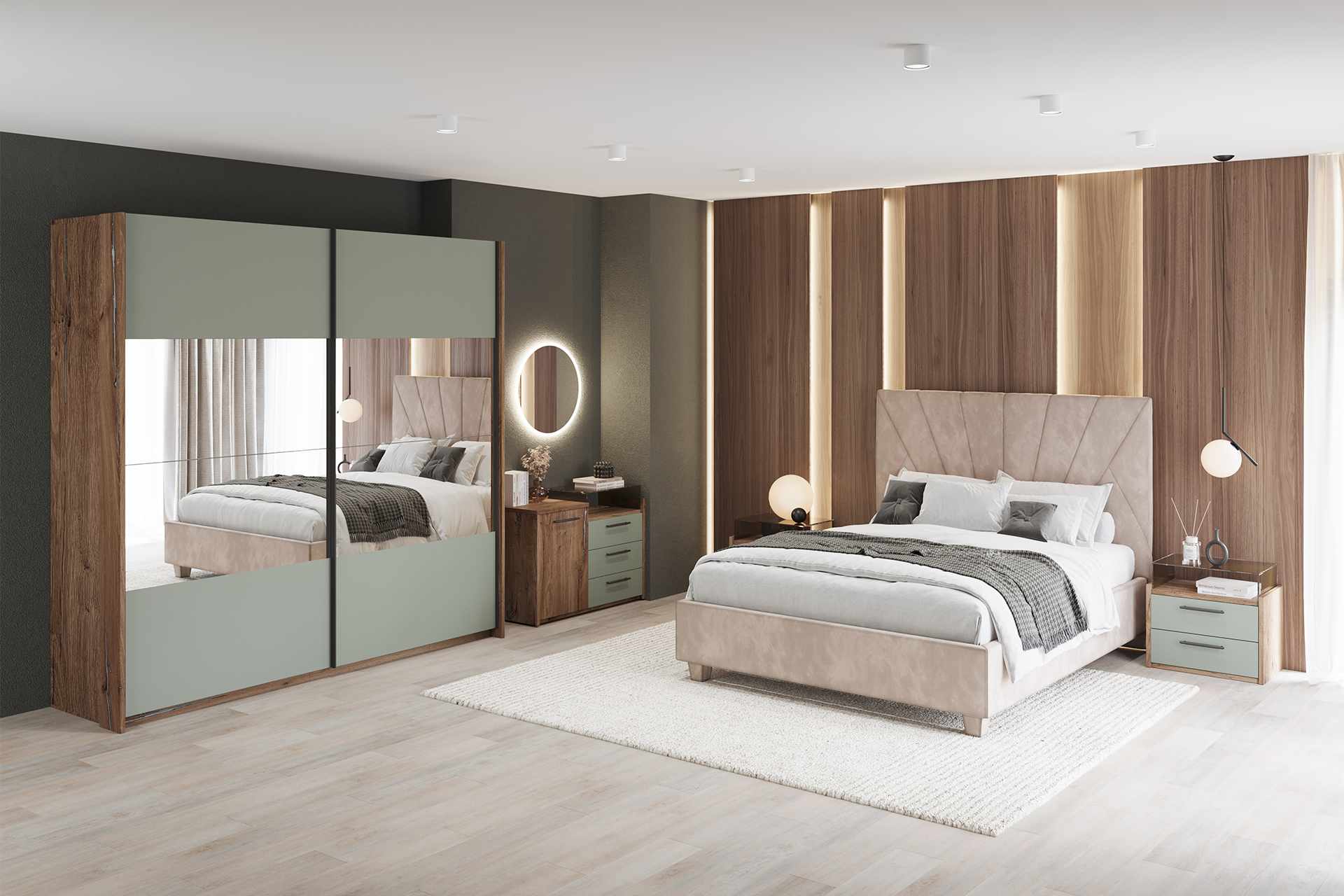 Dormitor Sereno cu șifonier 4 uși cu sertare L195