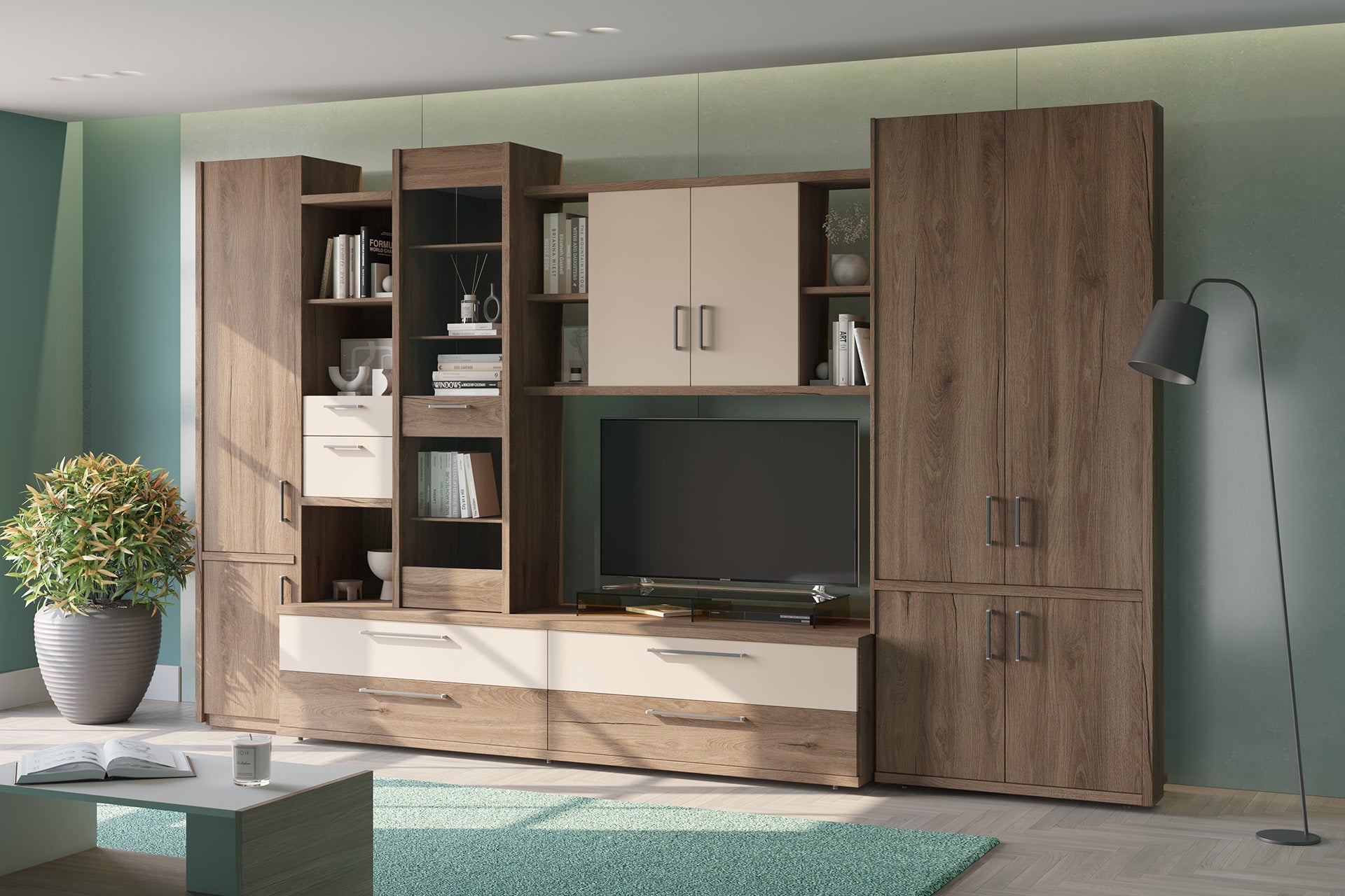 Perete living, stejar wotan / alb, ALUBA