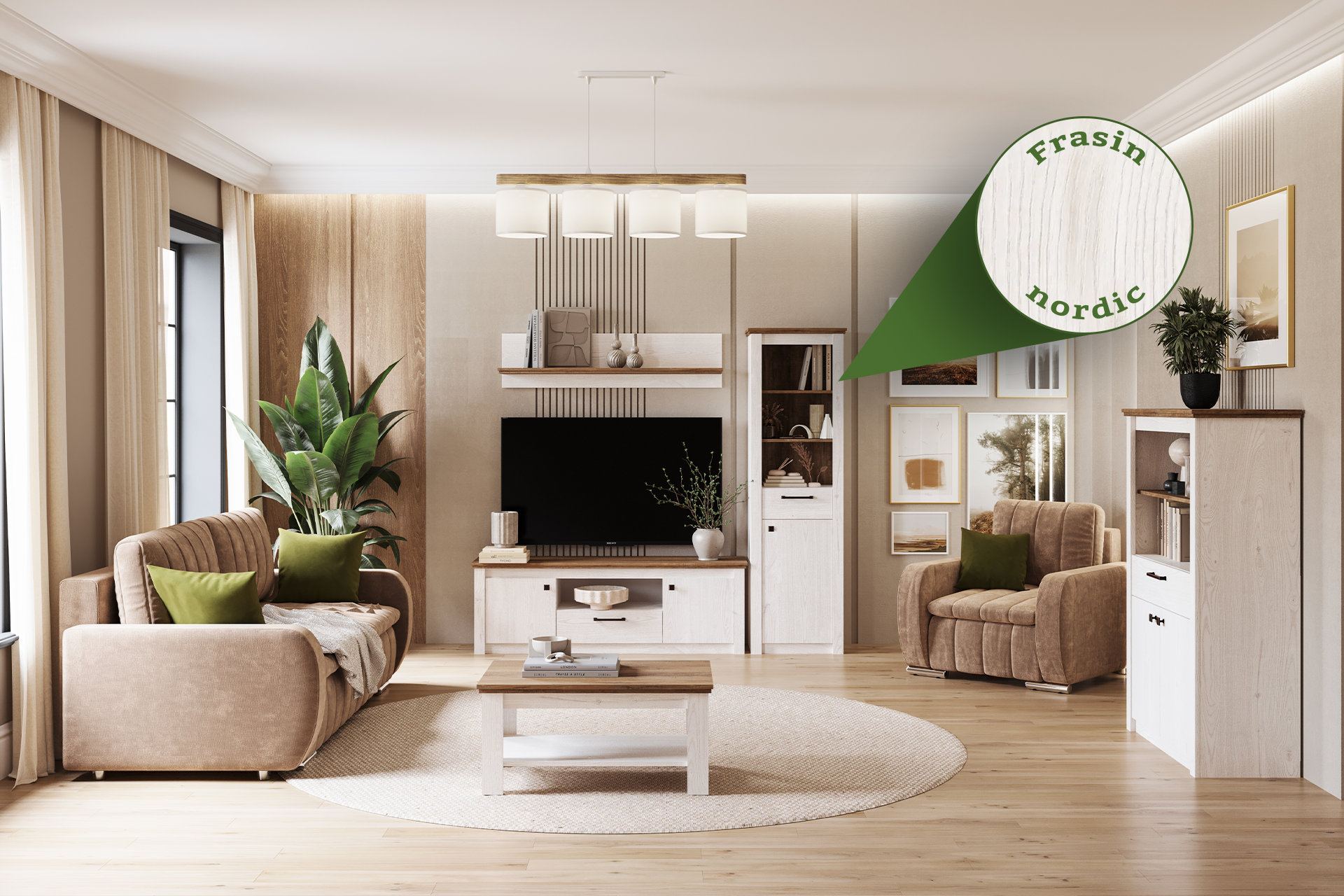 Perete camera de zi, stejar craft auriu / alb, TRIO
