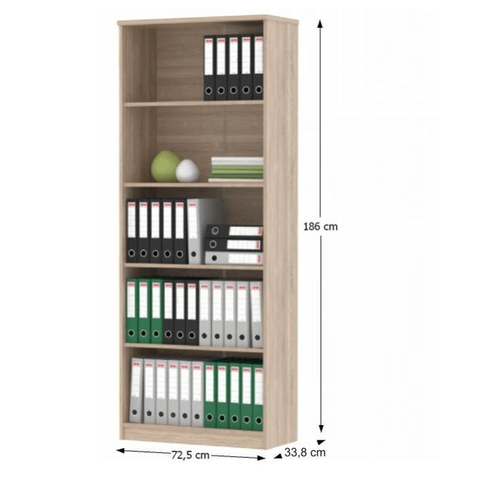 Dimensiunile biblioraftului mare (LxHxA): 72,5x33,8x186 cm