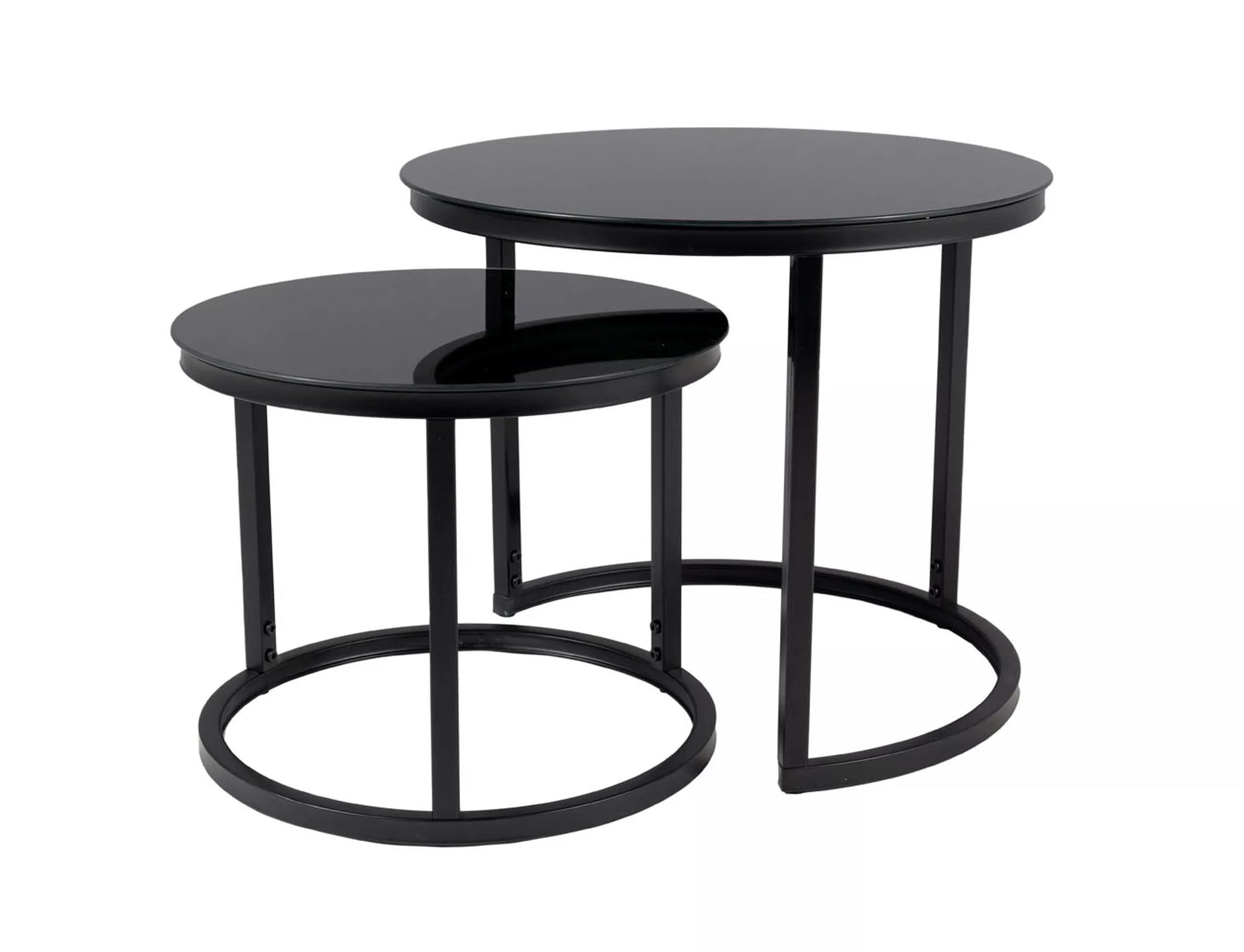 Set de bănci, blat: sticlă, cadru: metal, culoare: negru / negru mat. Dimensiunile mesei mai mici fi: 43, h-35cm.