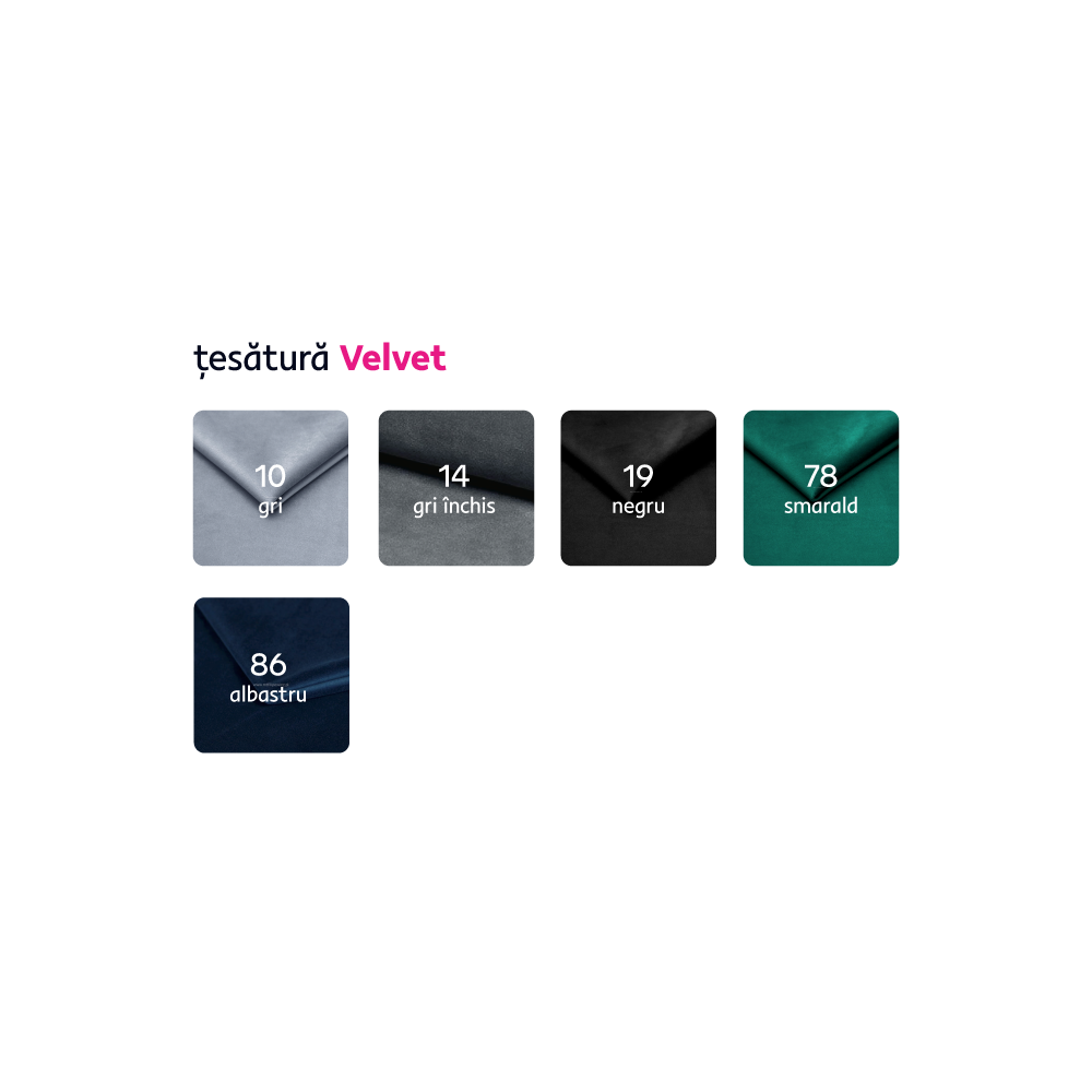 Poate fi comandat în 5 culori de stofă Velvet, cu un termen de livrare de 8-10 săptămâni. Pentru comenzi individuale, este necesar un depozit de 10% din suma dată. După plata avansului, cererea dumneavoastră va fi introdusă în producţie.