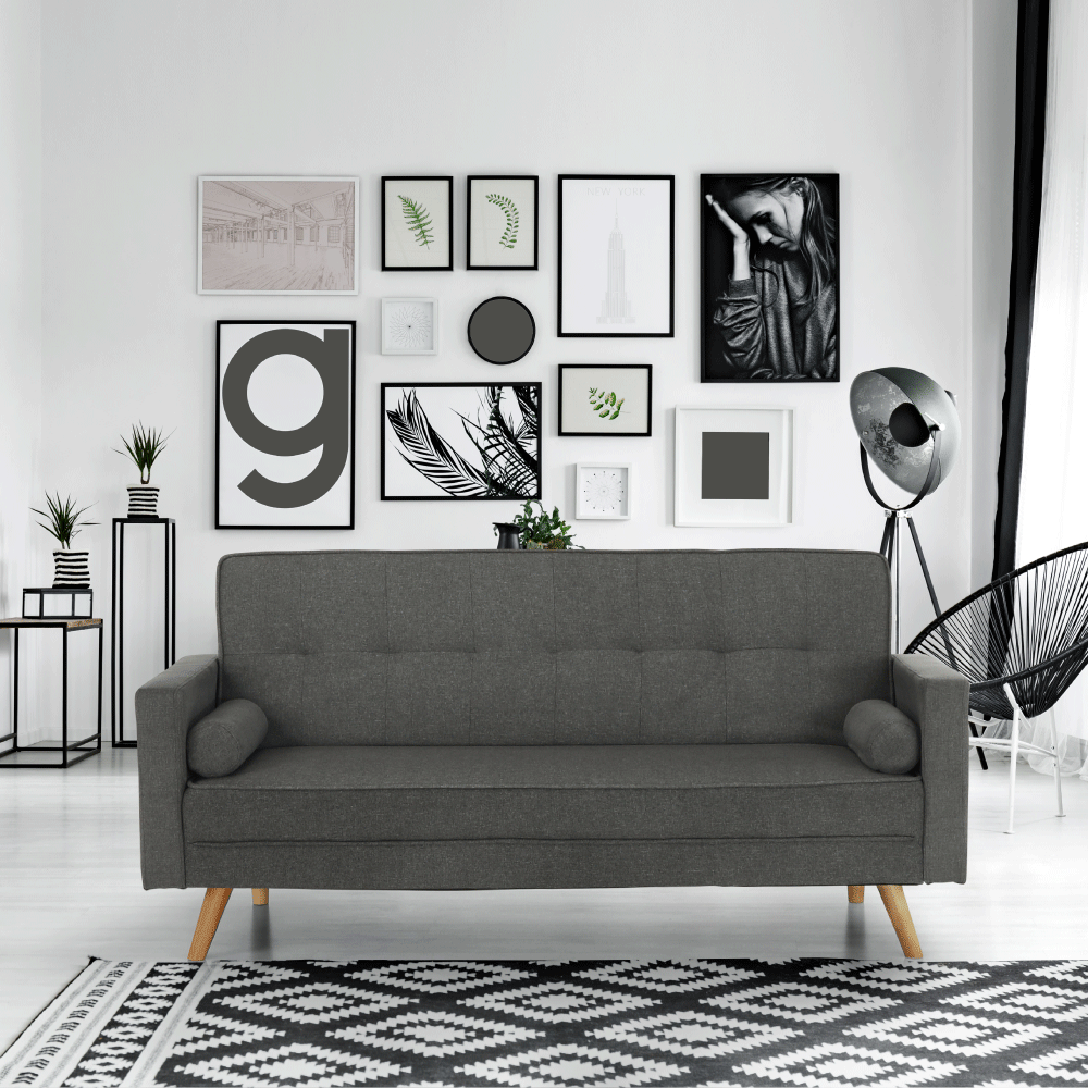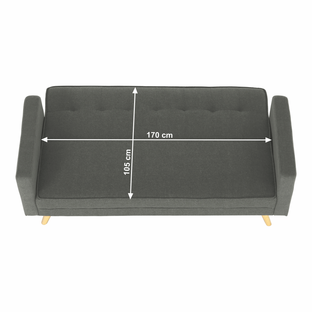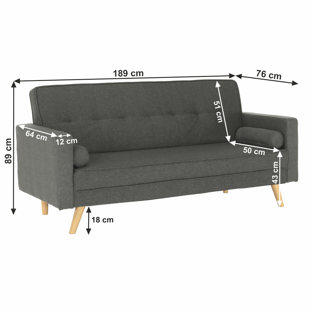 model: material gri, Dimensiuni (LxGxÎ): 186x75x89 cm, Spaţiu pt. dormit (LxG)167x105 cm , Înălţimea şezutului: 43 cm, Adâncimea şezutului: 50 cm. Greutate susţinută 160 kg.
