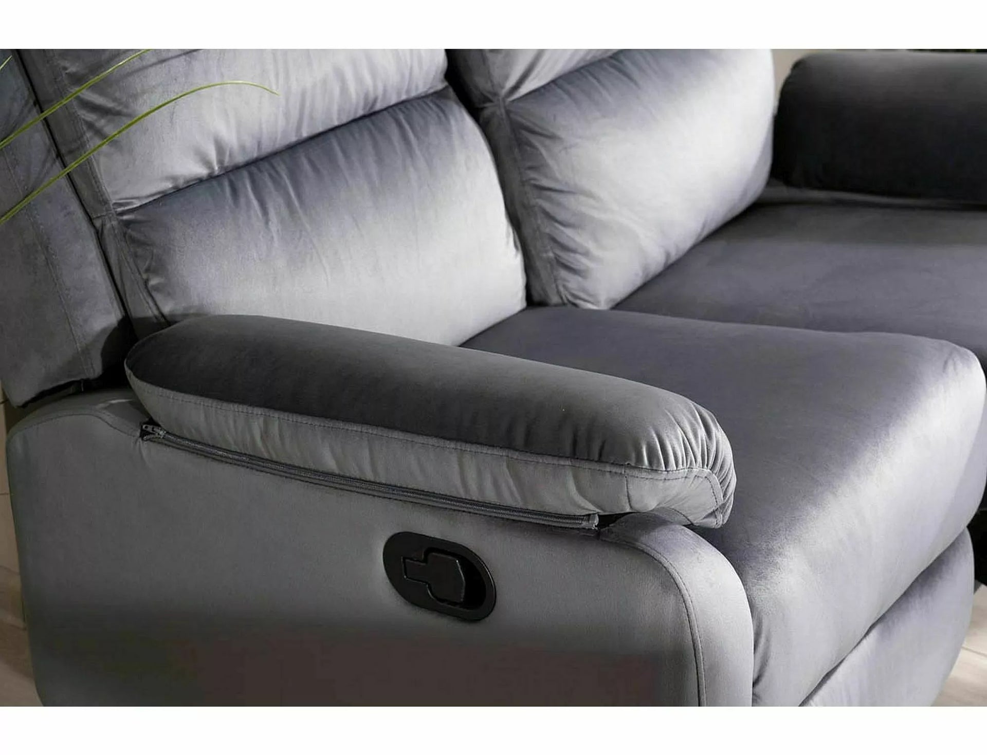 Canapea 2 locuri, tapițerie: material din catifea, cadru: metal, culoare: gri/negru. Scaune rabatabile.