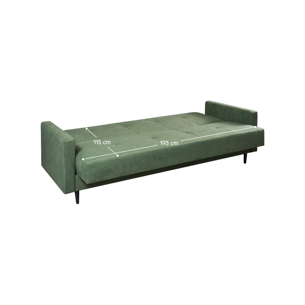 Material: ţesătură Enjoy 47 Rezistenţa ţesăturii conform testului Martindale: 45.000 de cicluri de frecare Culoare: verde Dimensiuni (LxAxÎ): 220x80x90 cm Înălţime scaun: 45 cm Adâncime scaun: 55 cm Înălţime spătar: 54 cm Dimensiuni cotieră (LxAxÎ): 14x80x46 cm Suprafaţa pentru dormit (LxL): 115x195 cm Picioare metalice Culoare picioare: neagră Înălţimea spaţiului inferior de la podea: 13 cm Umplutură: arcuri ondulate / spumă poliuretanică Capacitate de încărcare per persoană: 90 kg Tapiţată integral Extensibilă Cu spaţiu de depozitare Livrată dezasamblată Posibilitatea de a alege dintre 8 nuanţe ale ţesăturii Enjoy la preţul de 2.519 Lei. Pentru comenzi personalizate este necesară plata unui avans de 10% din suma totală. După achitarea avansului, comanda dumneavoastră va intra în producţie. Termenul de livrare este de 6-8 săptămâni.