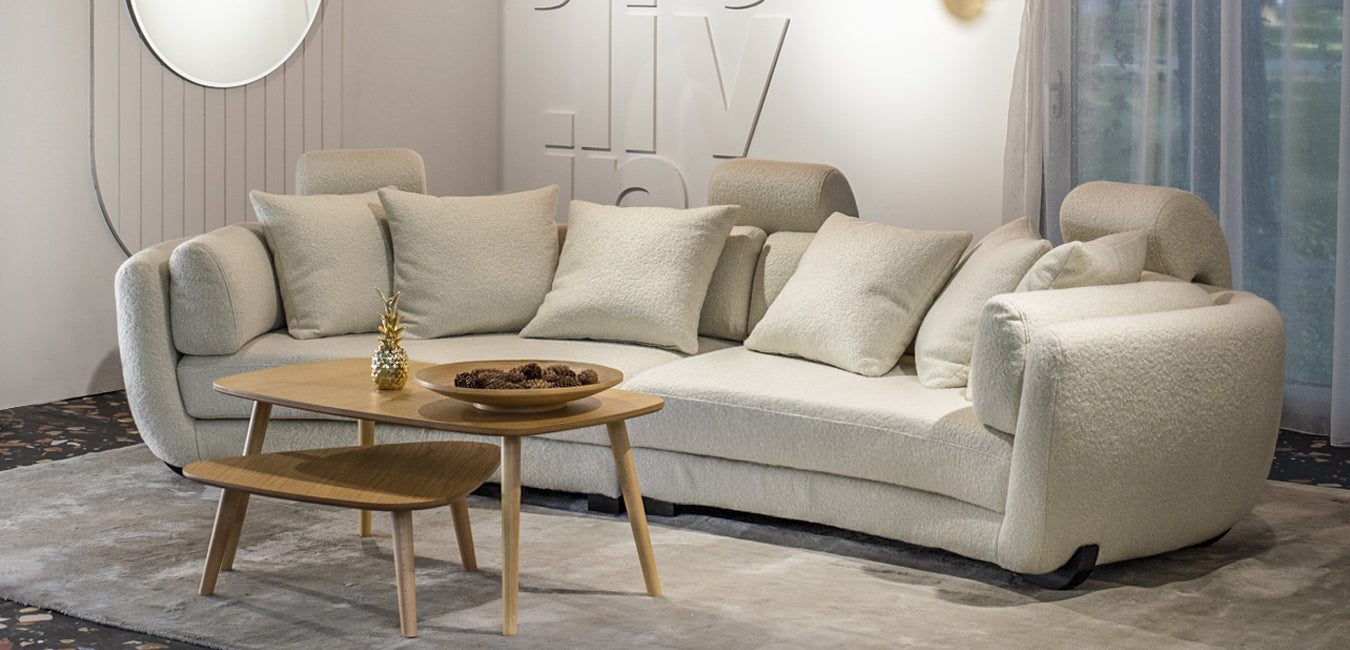 Șezutul, spătarul, pernele decorative și tetierele sunt dehusabile. Cadrul rămâne fix.