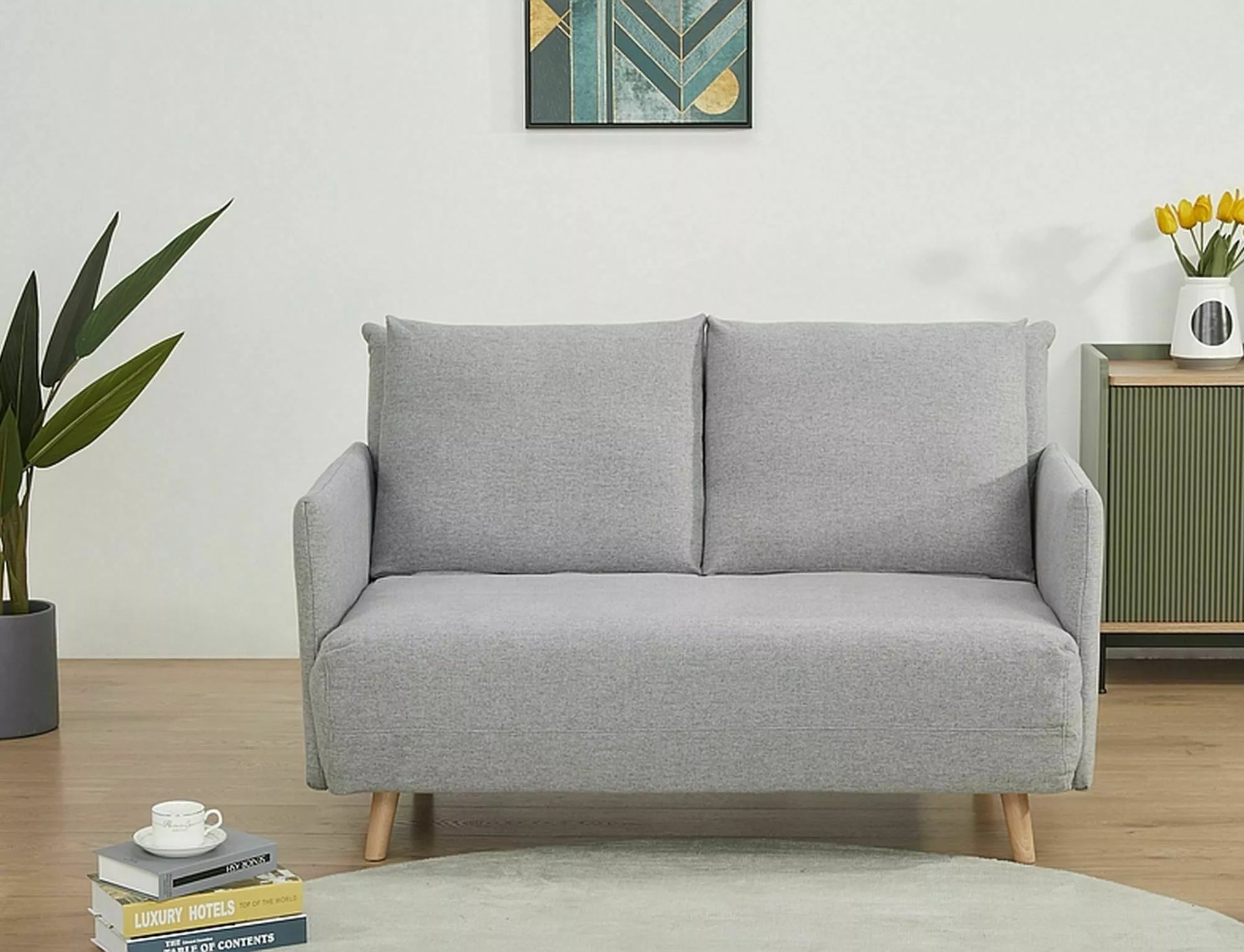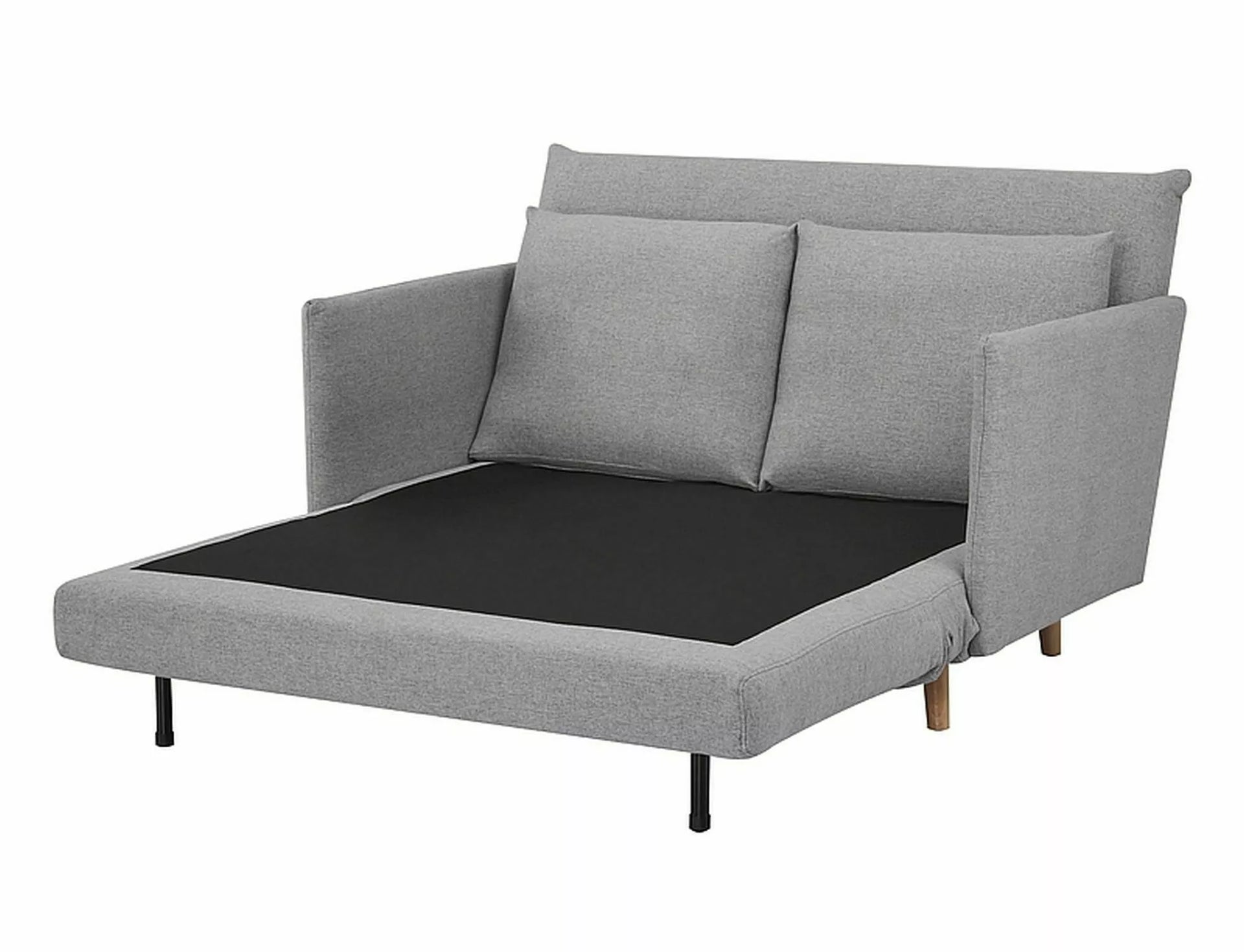 Canapea extensibilă: țesătură gri, tapițerie. 137 / lemn, culoare: fag.