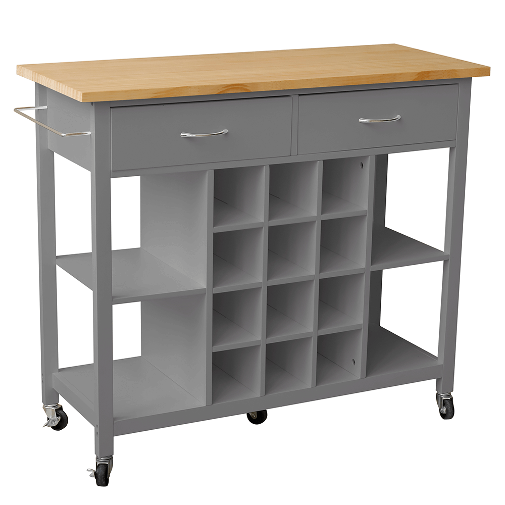Cărucior de servire cu suport pentru sticle, gri închis / natural, DILIA