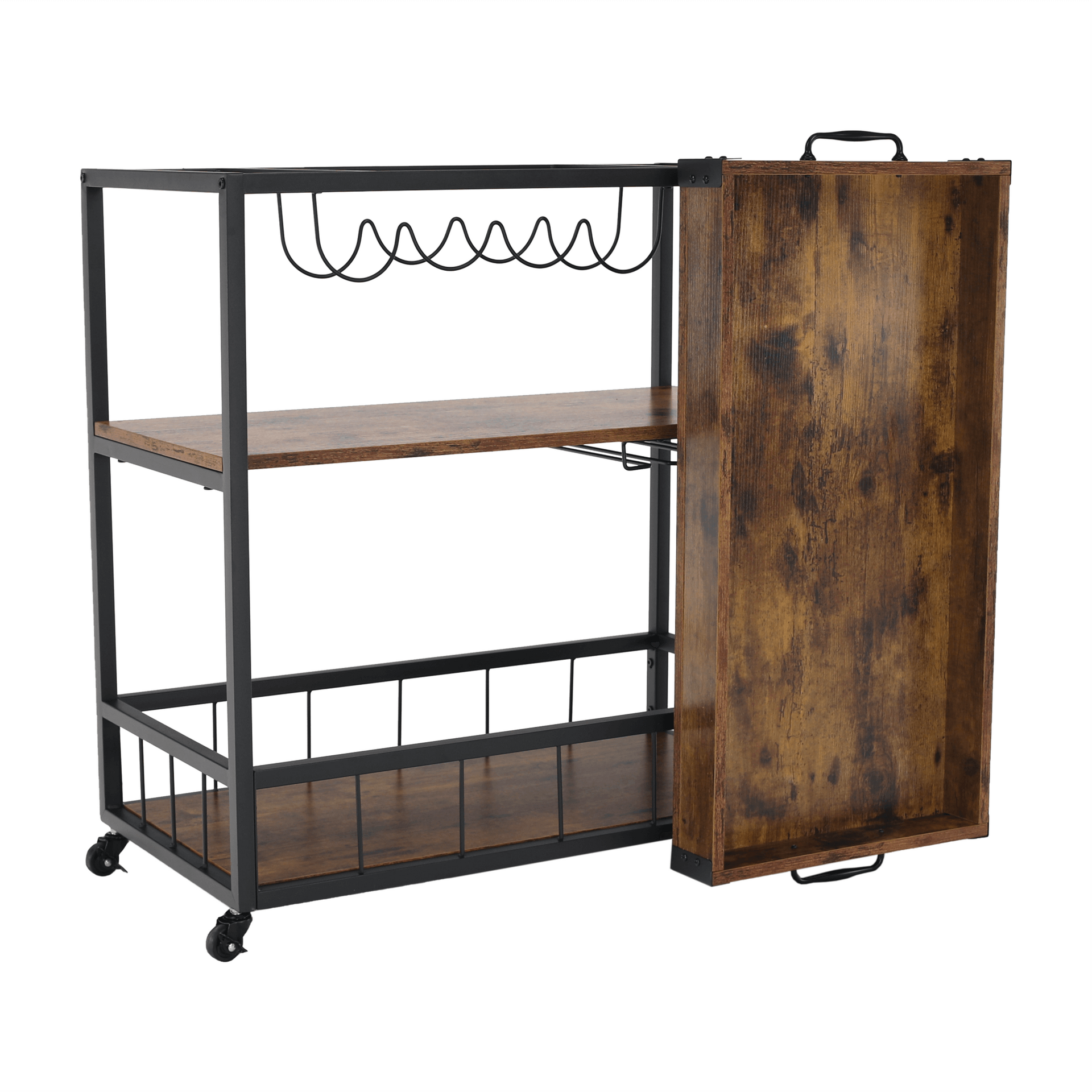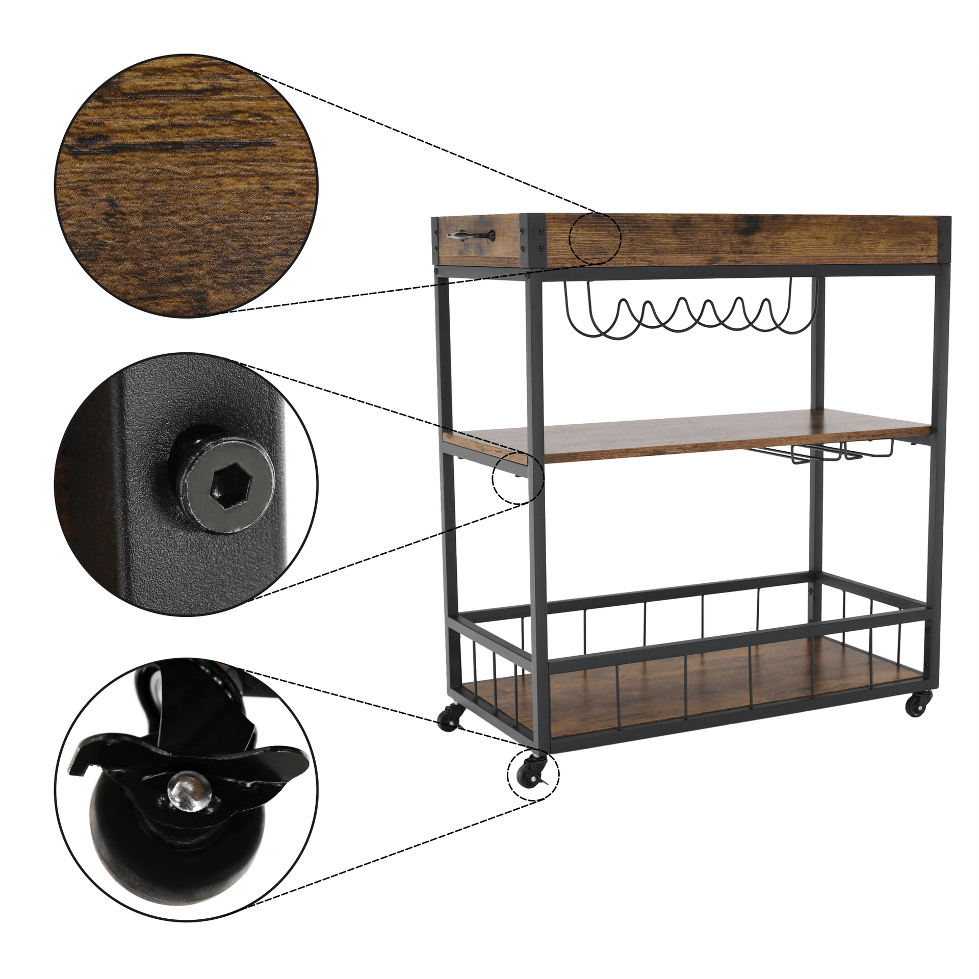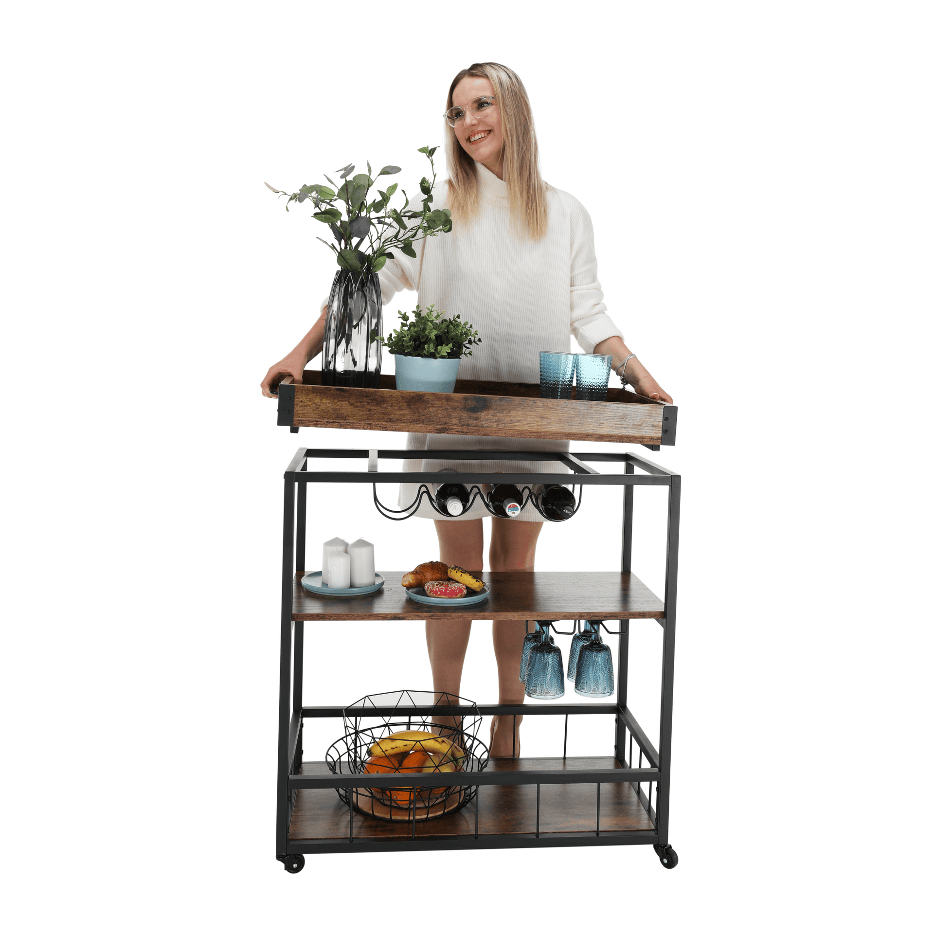 Cărucior de servire, stejar smoke / negru, SILVIUS