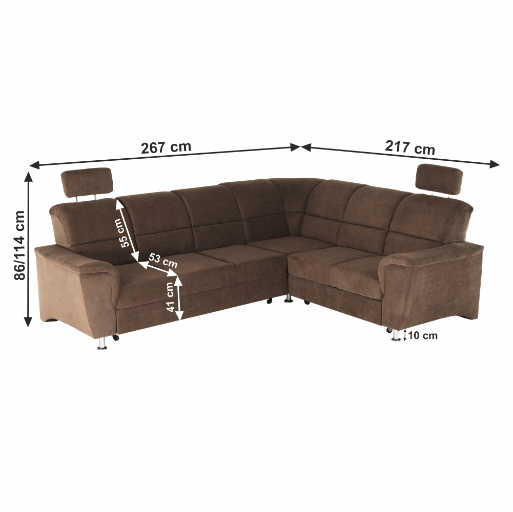 Dimensiuni (LxAxH): 267x217x86/114 cm Suprafaţa de dormit (LxI): 118x200 cm