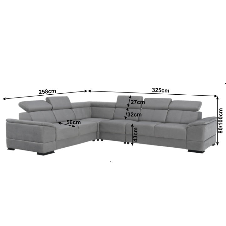 Colţar complet tapiţat SEGORIA (colţ pe dreapta), cu tetiere reglabile,