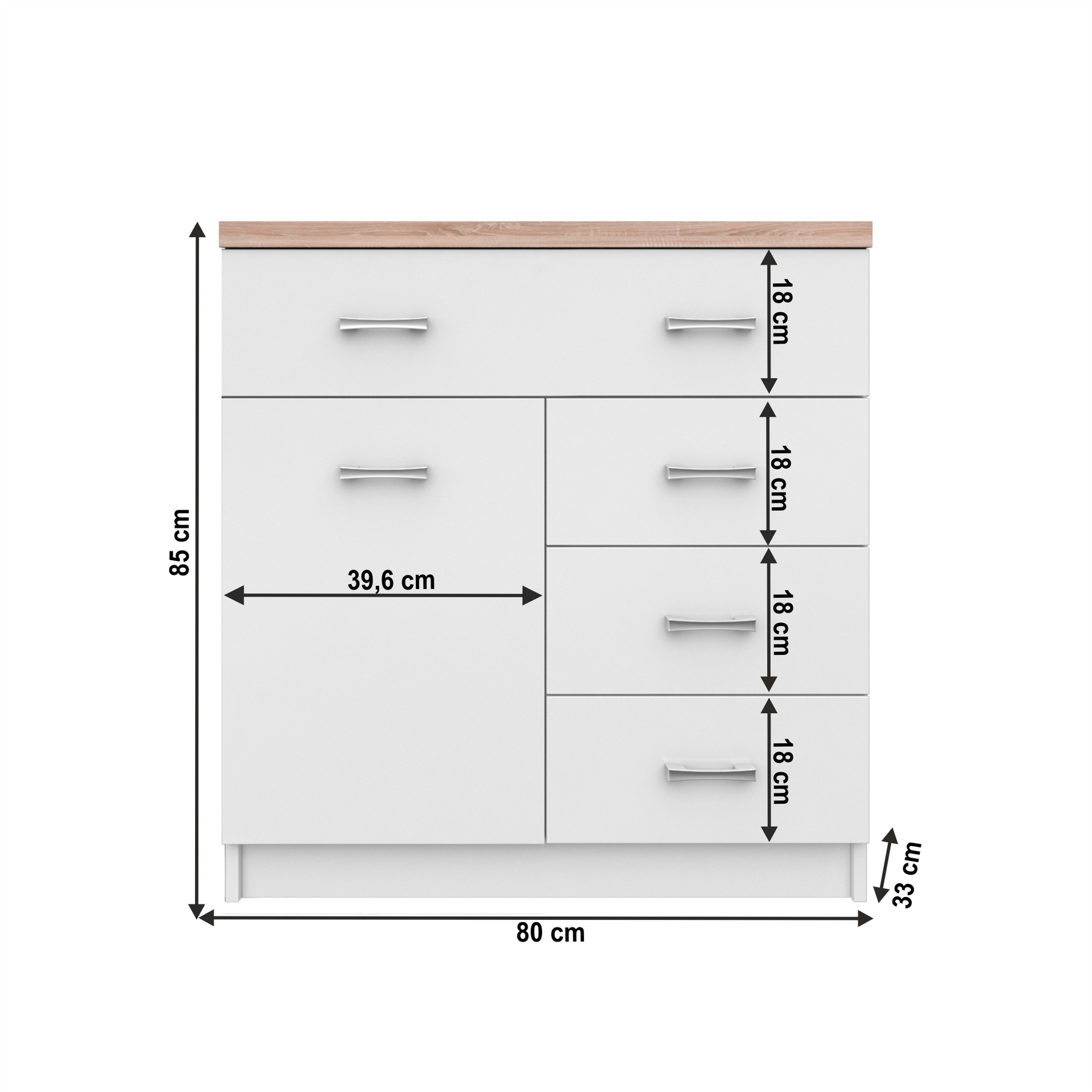 Comodă 1D4S, alb/stejar sonoma, TOPTY TYP 12