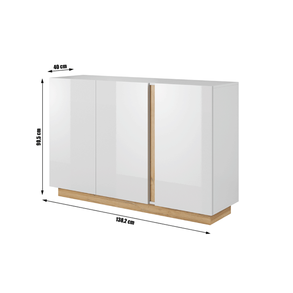 Comodă, alb/stejar grandson/alb lucios, CITY