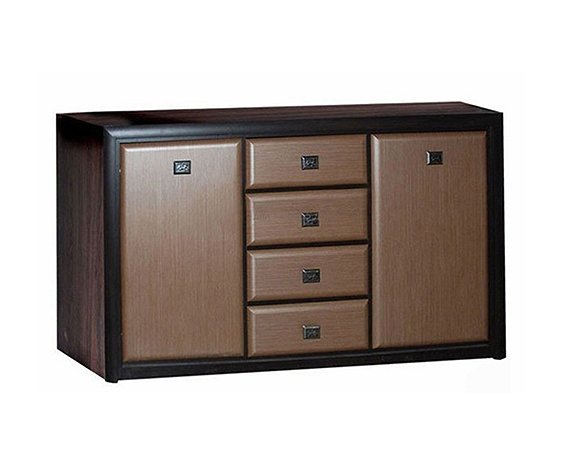 Interiorul spațios al comodei se compune din patru sertare și două dulapuri laterale pentru depozitarea obiectelor.