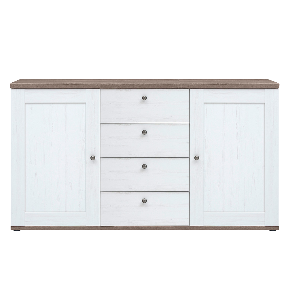 Material: laminat DTD Culoare: pin canyon/stejar sonoma trufel Dimensiuni (lxAxh): 154,5x43,5x89 cm Grosimea materialului: 1,6 cm Cu mânere Material mânere: metal Culoare mânere: argint vechi 4 sertare Capacitate sertar: 3 kg Cu ??două uşi 2 dulapuri Cu poliţe Portanţă poliţă: 5 kg Design modern Vă recomandăm să ataşaţi mobilierul de perete Livrat dezasamblat