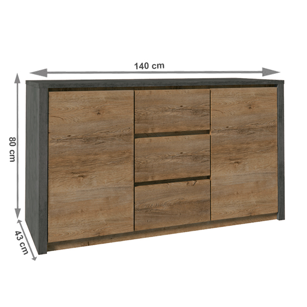 Comodă, stejar lefkas închis/gri, MONTANA K2DP