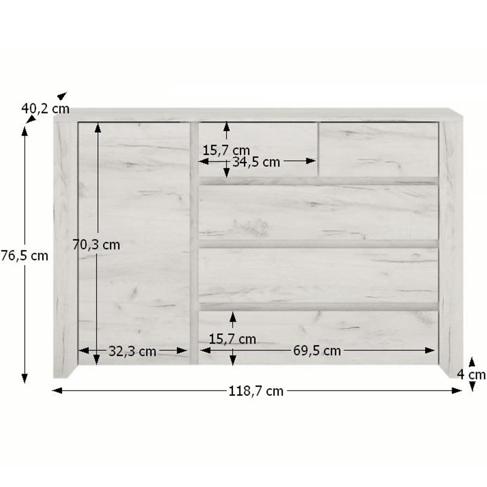 Comodă TYP 41 din ansamblul de mobilier modular ANGEL, cu dulap, două sertare mai mici şi trei mai mari