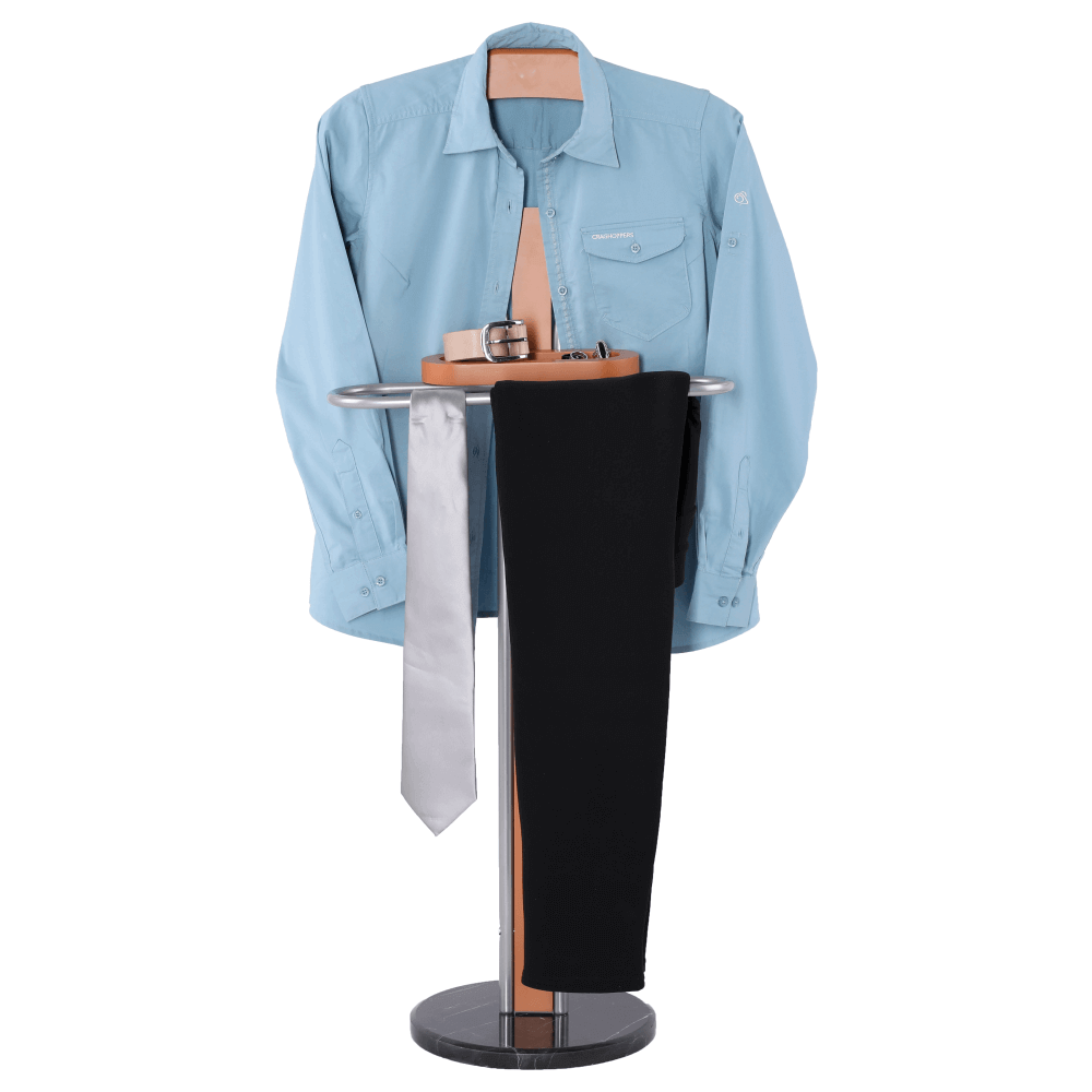 Cuier, material: metal + lemn + marmură, model: metal - argintiu,