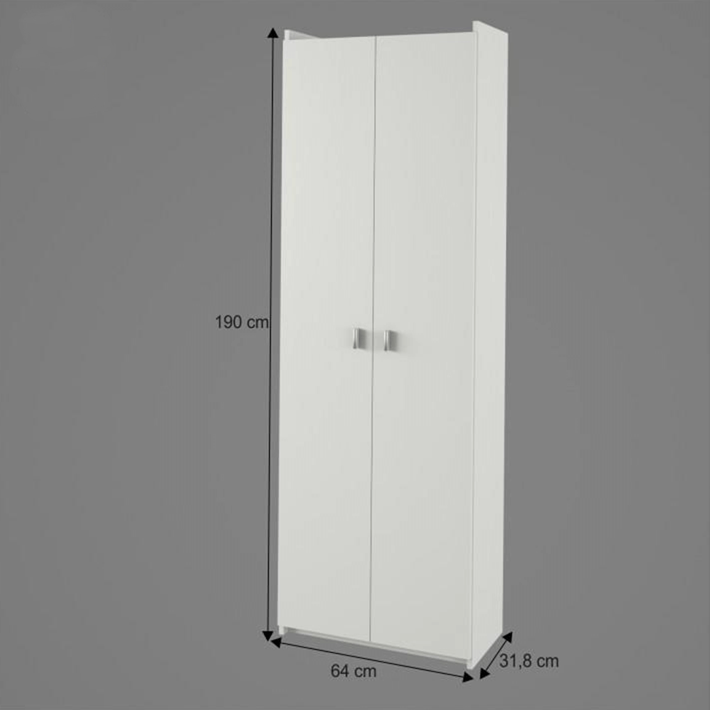 Dulap cu poliţe - 1 fixă şi 3 reglabile. Dimensiuni (LxHxA): 64x190x31,8 cm. Material şi culoare: PAL melaminat, alb. Produs Slovac. Grosimea materialului: 16 mm