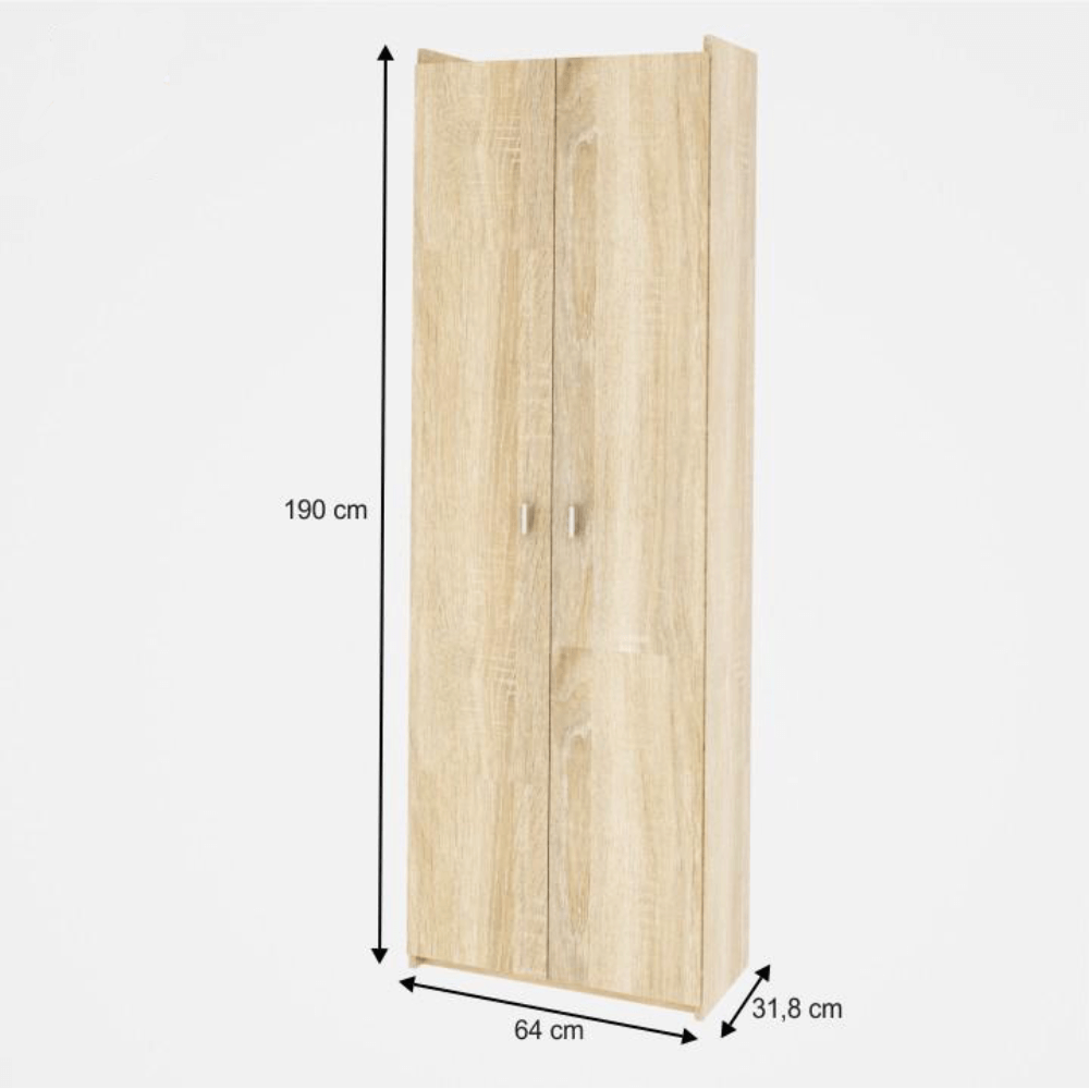 Dulap cu poliţe - 1 fixă şi 3 reglabile. Dimensiuni (LxHxA): 64x190x31,8 cm. Material şi culoare: PAL melaminat, stejar sonoma. Produs Slovac. Grosimea materialului: 16 mm