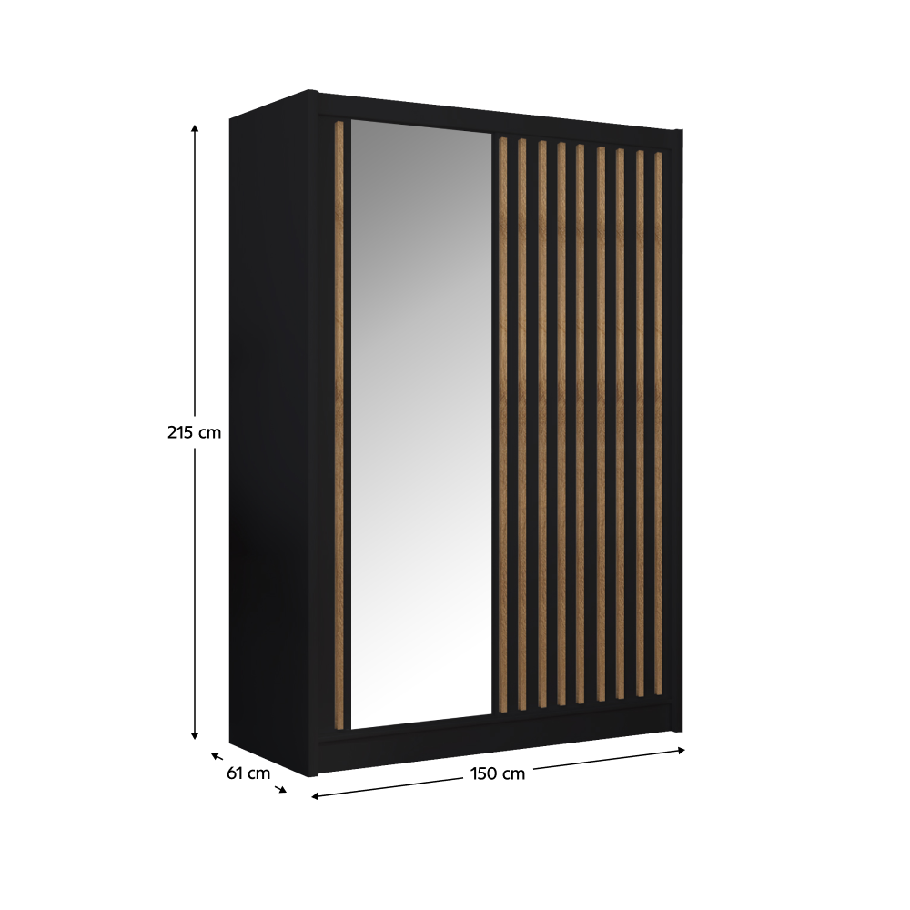 Dulap cu uşi glisante, negru / stejar craft, 150x215 cm, LADDER