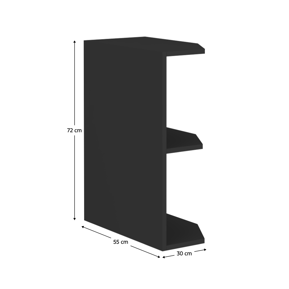 Material: DTD laminat Culoare: negru mat Dimensiuni (Lxlxh): 30x55x72 cm Grosime material: 1,6 cm Cu poliţă Deschis De colţ Fără şină inferioară/soclu Fără blat de lucru Design modern Cu opţiunea de a cumpăra chiuveta universală LAY ON. Livrat dezasamblat Dulapurile inferioare includ şina inferioară, fără blat de lucru. Opţiunea de a achiziţiona blat de lucru din marmură roma la preţul de 339 Lei/ml. Opţiunea de a achiziţiona o chiuvetă universală LAY ON.