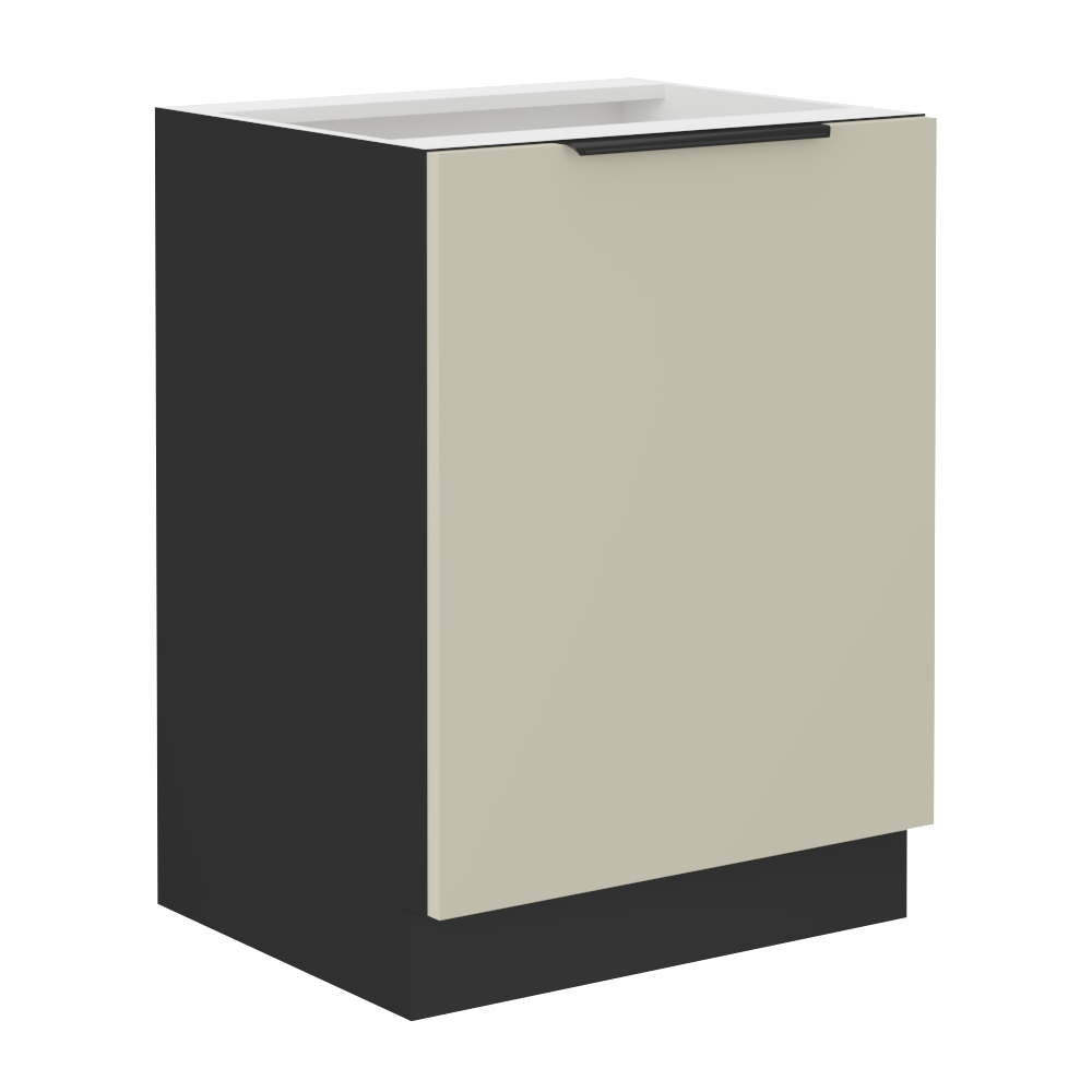 Material: DTD laminat Culoarea uşii: caşmir Culoarea dulapului: negru mat Dimensiuni (Lxlxh): 60x52x82 cm Grosime material: 1,6 cm Cu uşi, Rafturi, Cu mâner metalic Culoarea mânerului: neagră Fără blat de lucru Cu şină inferioară/plintă Sistem de oprire silenţioasă a sertarelor Design modern Opţiune de achiziţionare a unei chiuvete universale LAY ON Se livrează dezasamblat Dulapurile inferioare sunt furnizate împreună cu şina inferioară, fără blat de lucru. Opţiunea de a achiziţiona blat de lucru din marmură roma la preţul de 339 Lei/ml. Opţiunea de a achiziţiona o chiuvetă universală LAY ON.