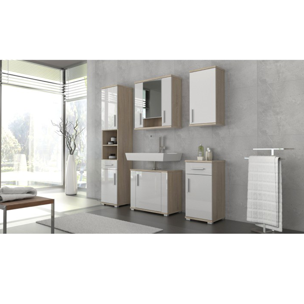 Dulap suspendat cu oglindă, stejar sonoma/ alb mat, LESSY NEW 01