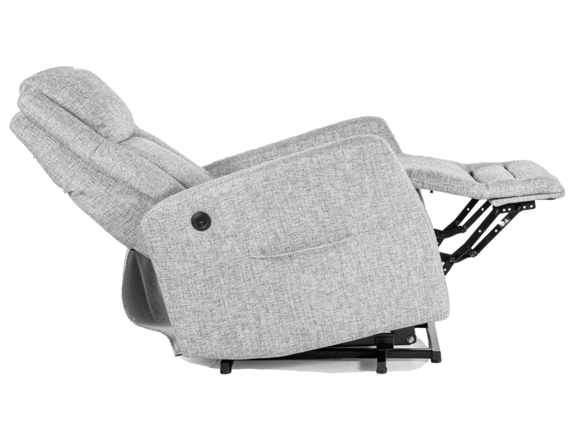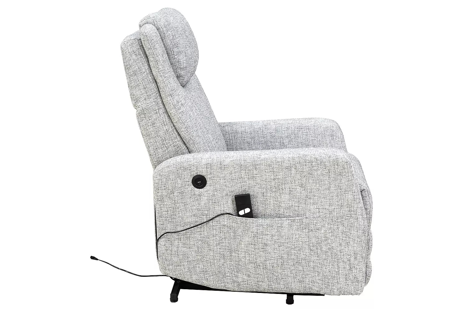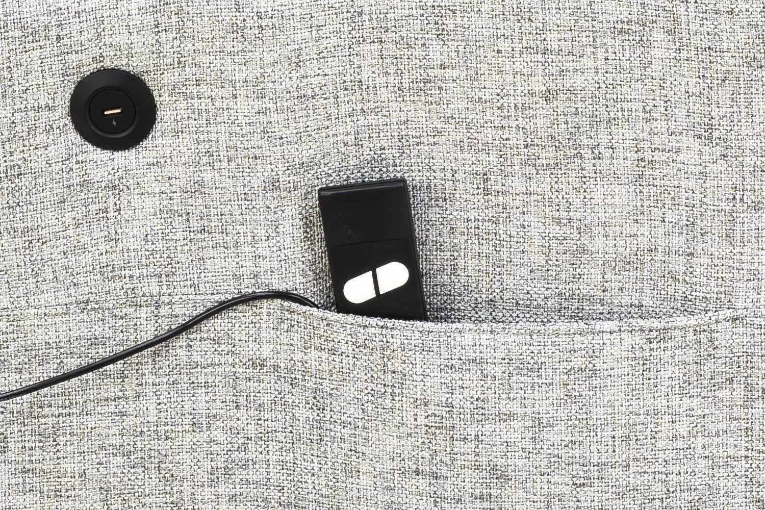 Fotiu rabatabil electric, tetiera reglabila, robinet din material.178, culoare: gri. Telecomandă cu fir pentru a controla înclinarea scaunului, buzunarul și priza de încărcare USB pe partea dreaptă.