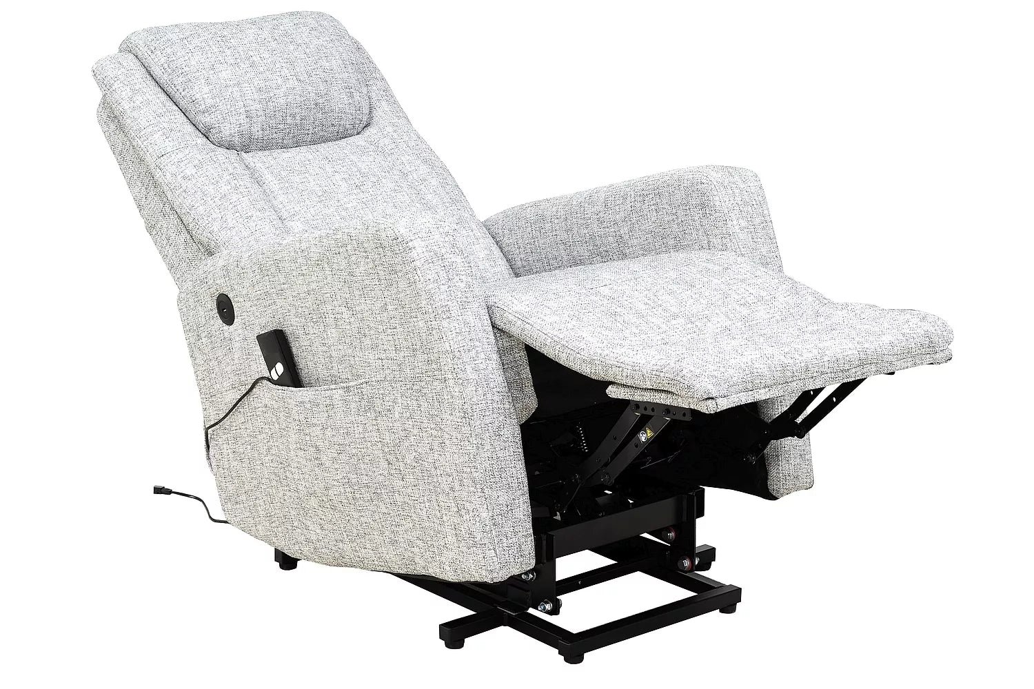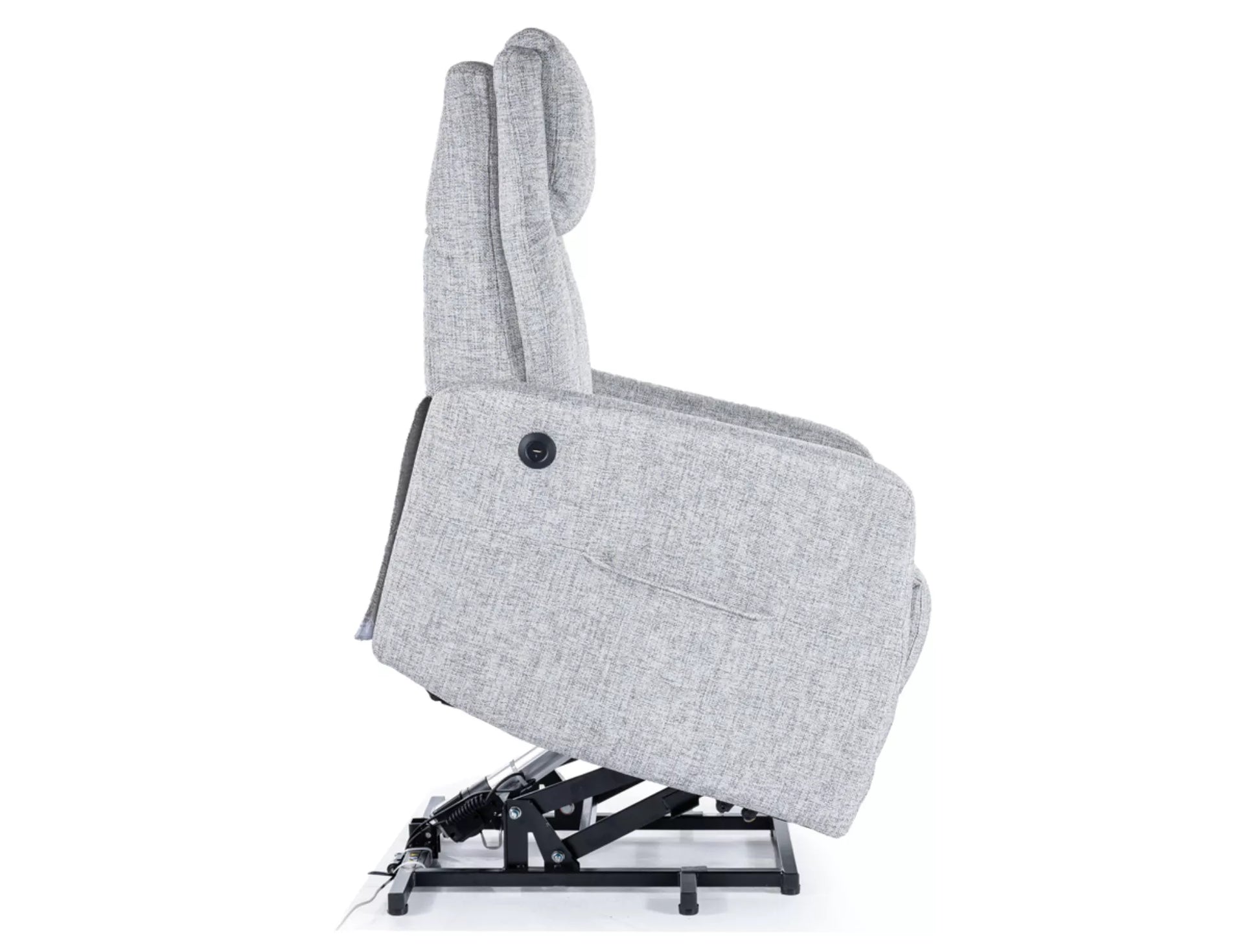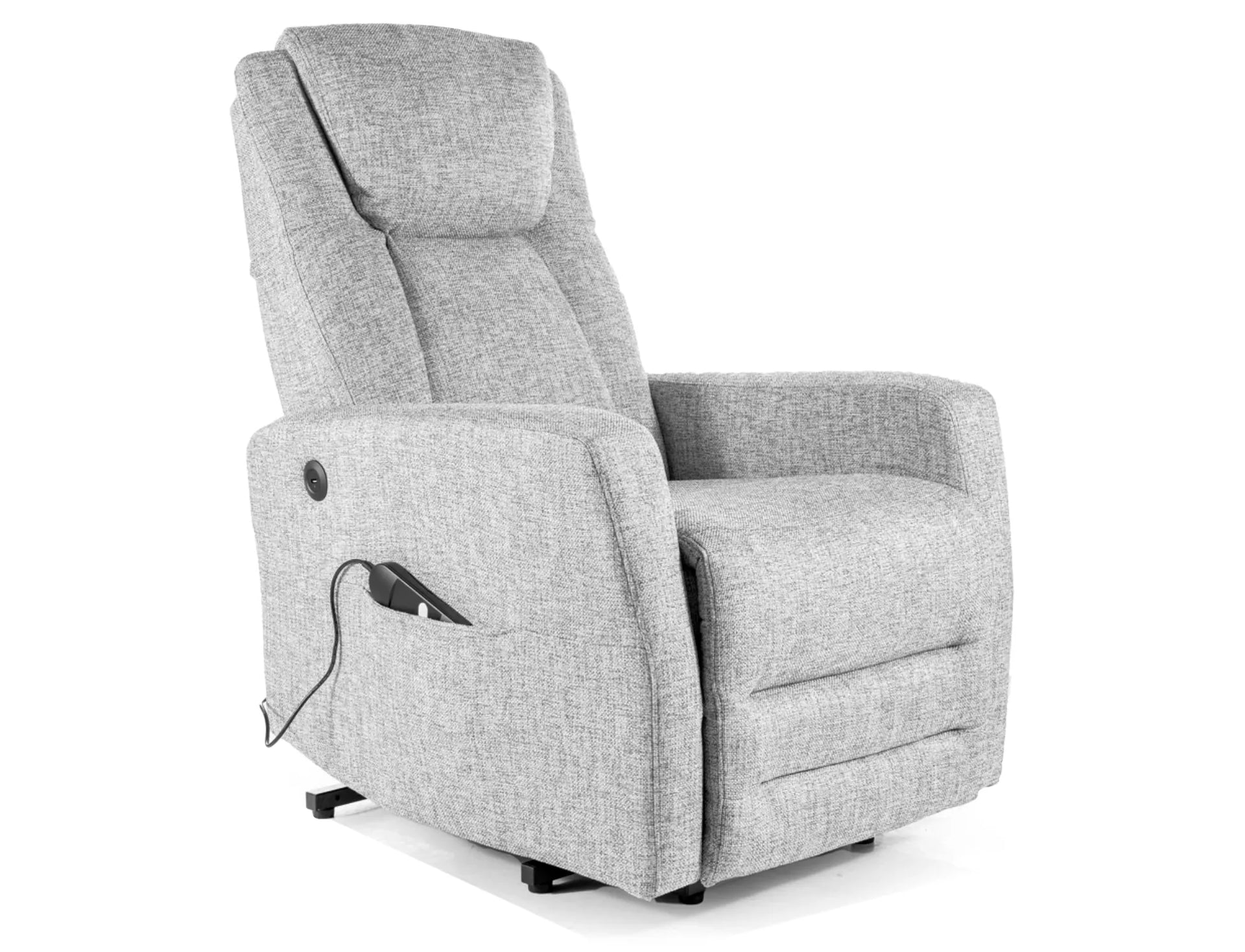 Fotiu rabatabil electric, tetiera reglabila, robinet din material.178, culoare: gri. Telecomandă cu fir pentru a controla înclinarea scaunului, buzunarul și priza de încărcare USB pe partea dreaptă.