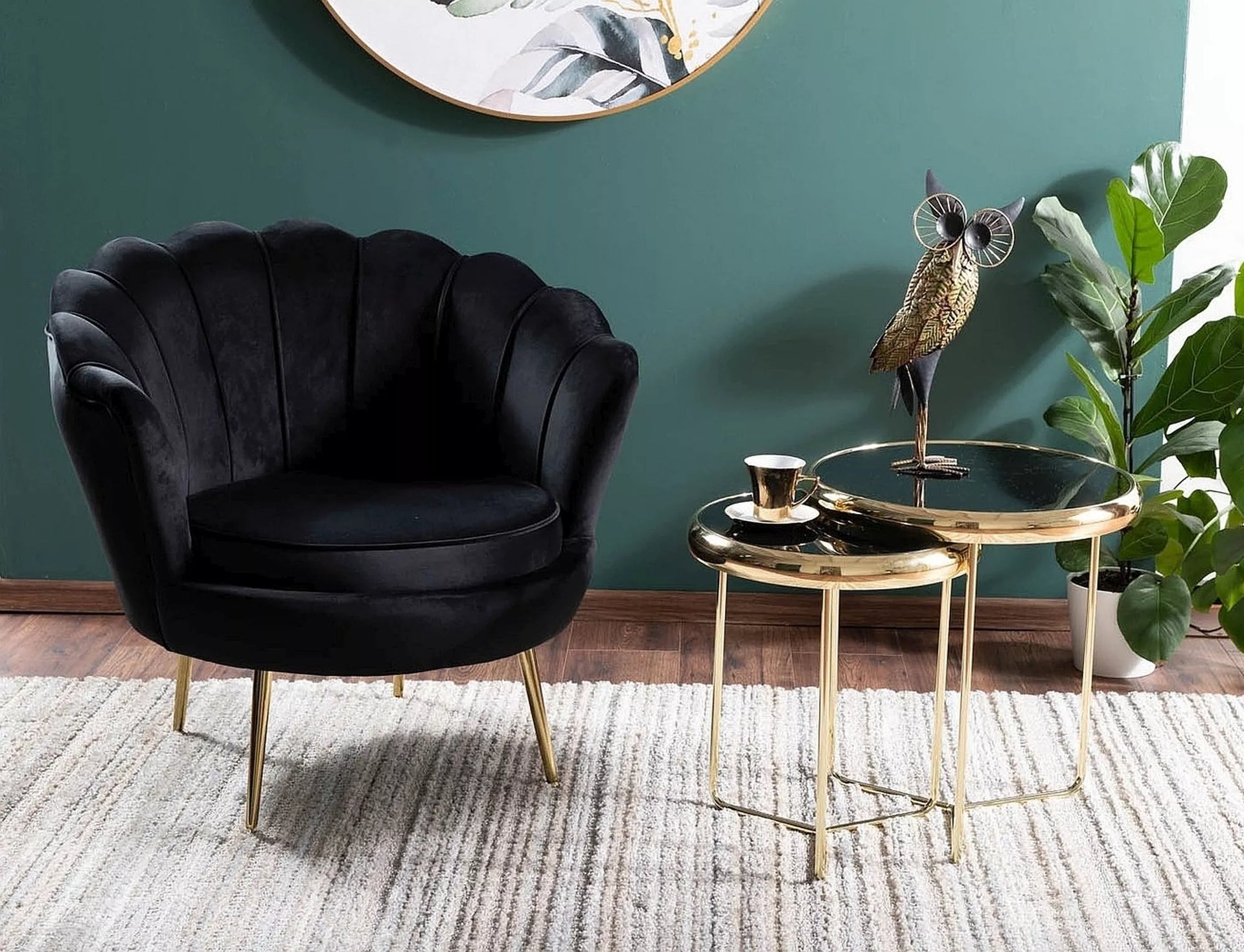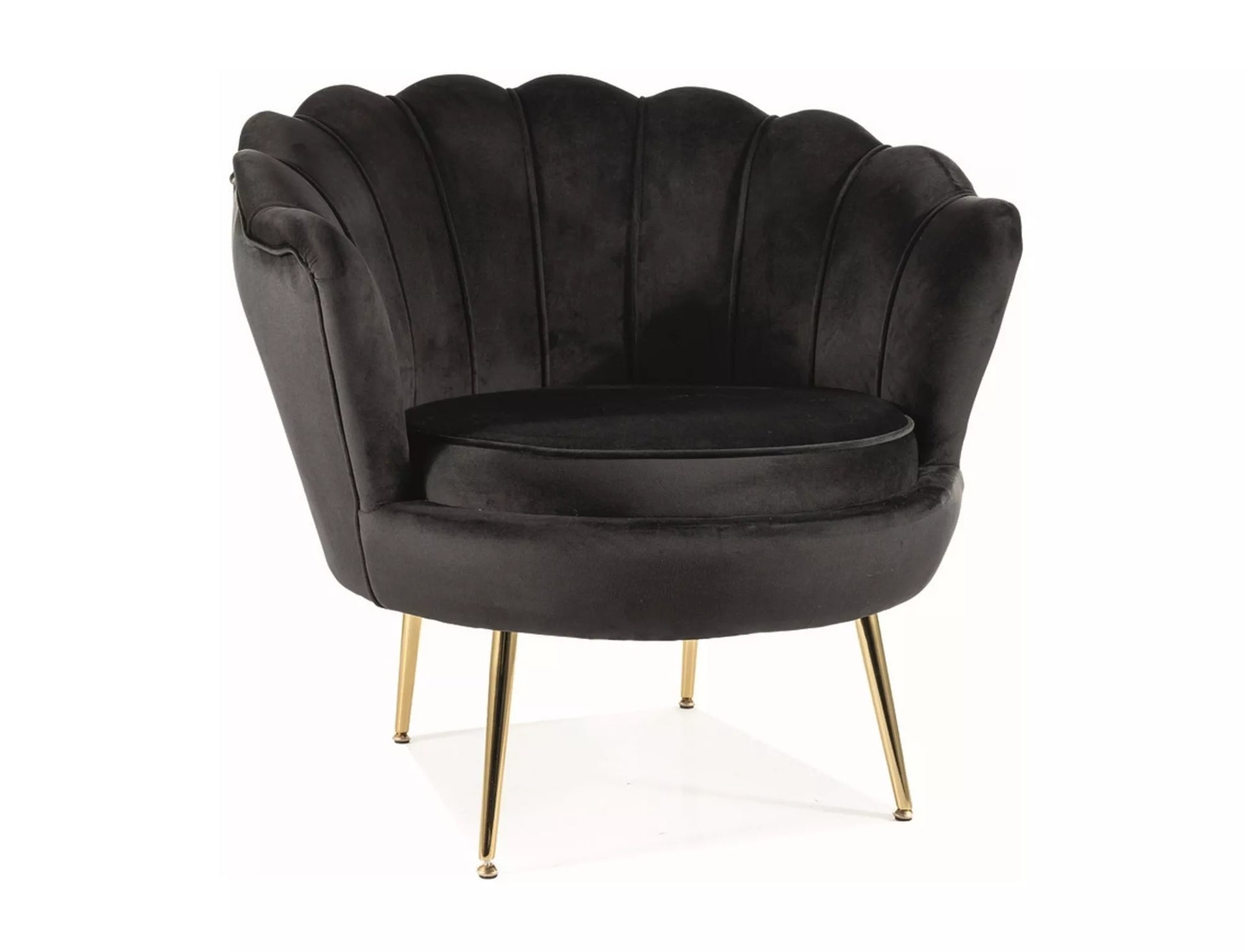 Fotliu, material Bluvel, culoare: negru 19, cadru: metal, culoare: auriu.