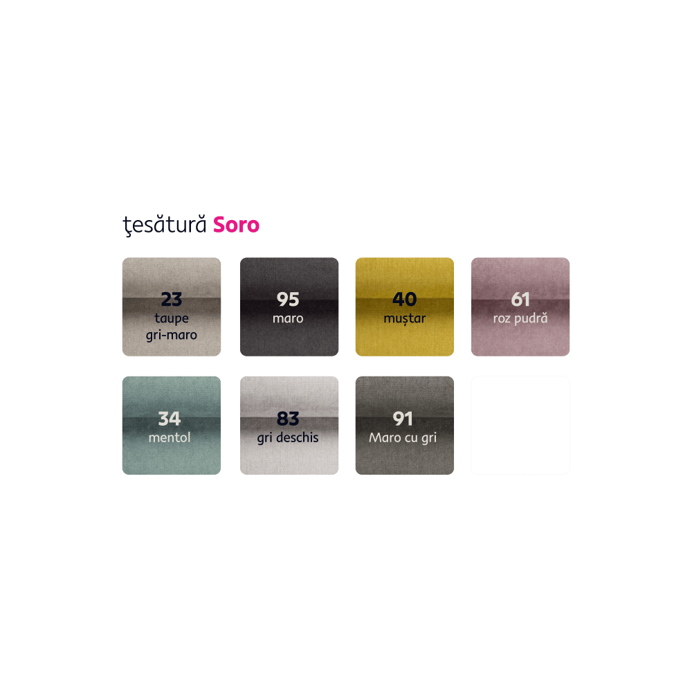 Material: ţesătură Soro 97/90 Rezistenţa ţesăturii conform testului Martindale: 90.000 - 100 000 de cicluri de frecare Culoare: gri închis/gri deschis Dimensiuni (LxAxÎ): 56x52x85 cm Înălţime scaun: 44 cm Adâncime scaun: 51 cm Umplutura: spuma RE Capacitate per persoana: 90 kg Tapiţat complet Picioare din plastic Înălţimea compartimentului inferior de la podea: 2 cm Practic Stil modern clasic Livrat asamblat Posibilitate de comandă in 7 nuanţe de culoare ale materialului Soro la preţul: canapea - 679,-, fotoliu - 2 393,-. La o comandă individuală, este necesară o plată în avans de 10% din suma respectivă. După achitarea avansului, comanda dumneavoastră va intra în producţie. Termenul de livrare este de 6-8 săptămâni.