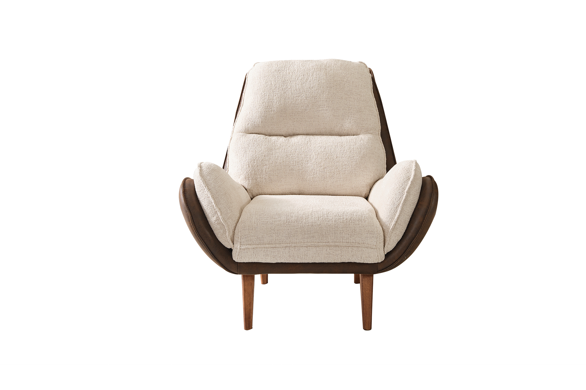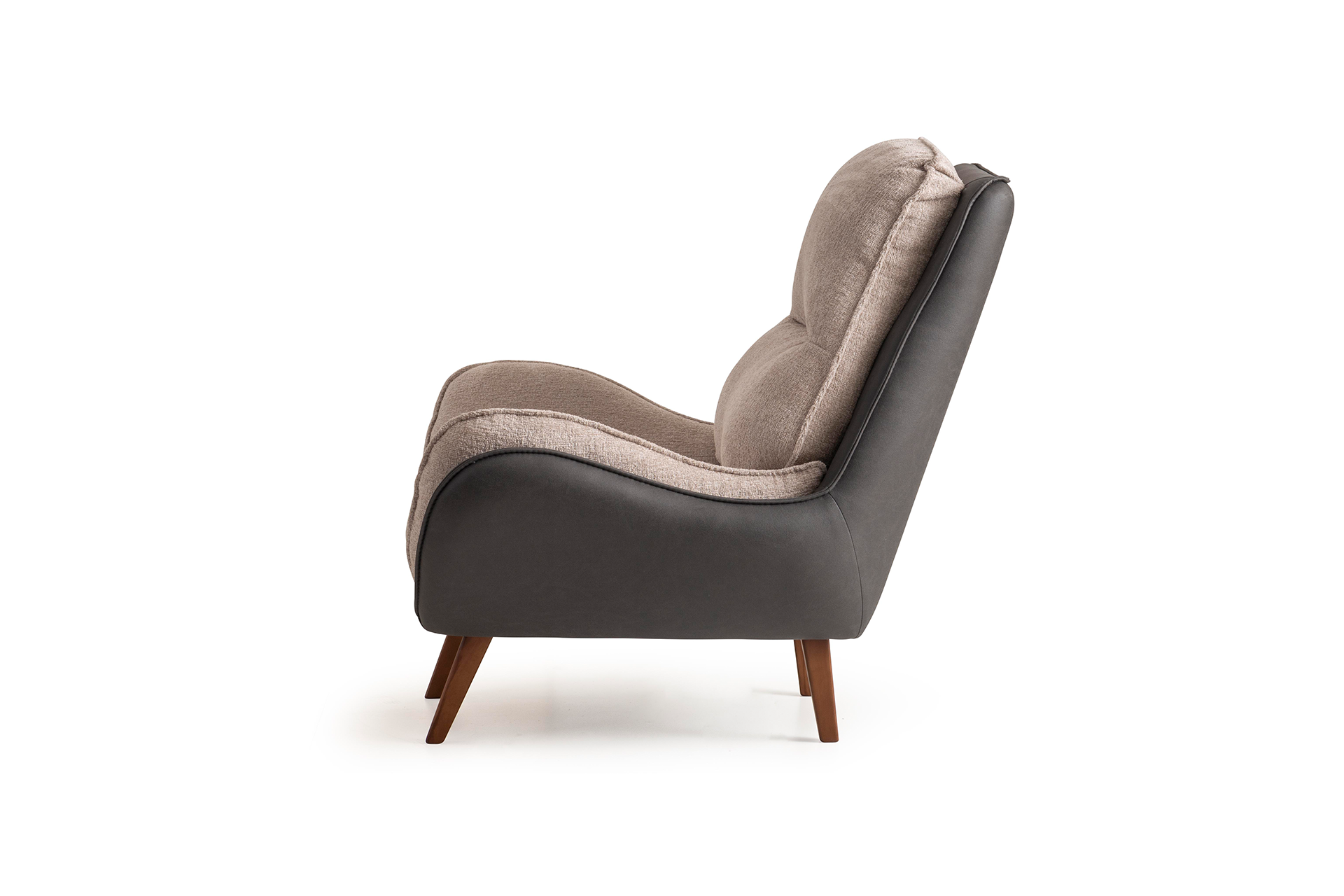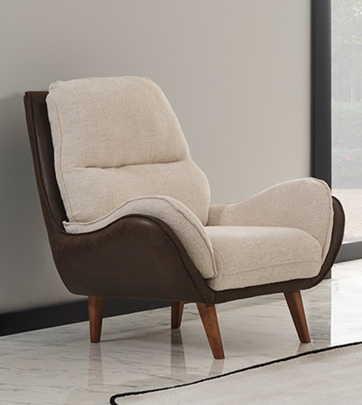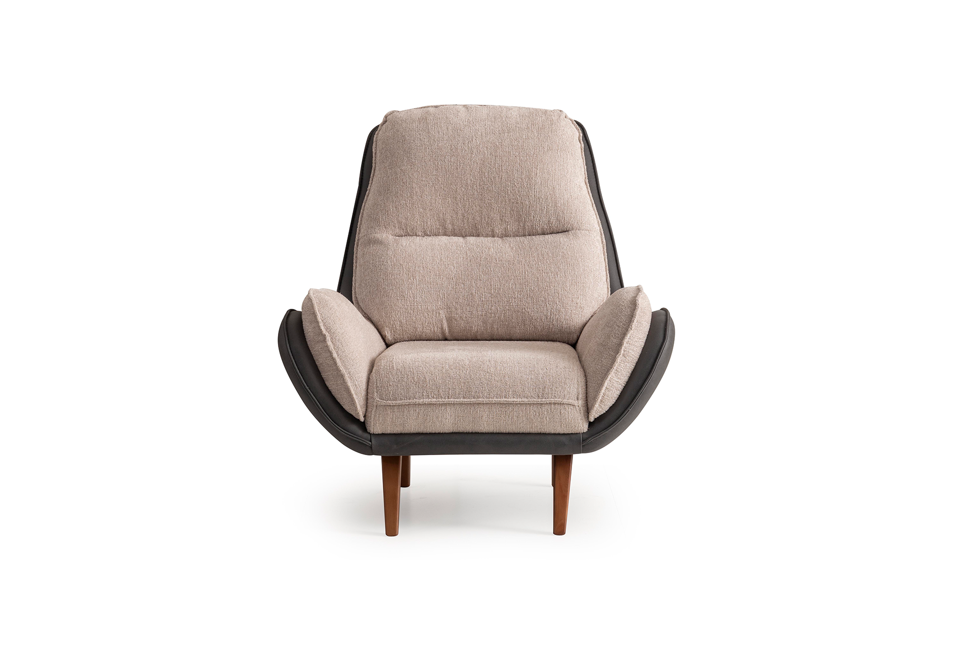 Tip: 1 loc. Materialul de acoperire: stofă boucle și stofă (similară cu pielea întoarsă); Finisaj: Ruya 03 + Keops 65 (crem + gri), Ruya 03 + Keops 54 (crem + maro); Dotări: picioare cu finisaj lemn; Dimensiuni: L85 x A85 x H90 cm (lungime x adâncime x înălțime).