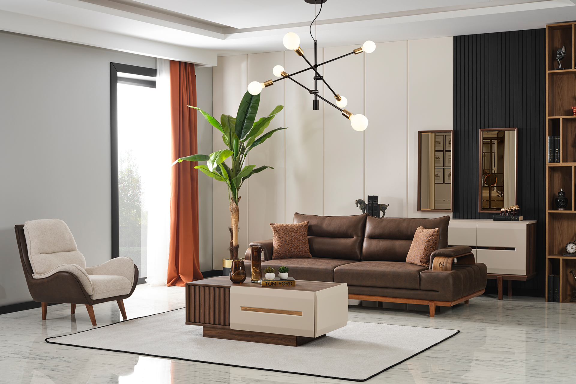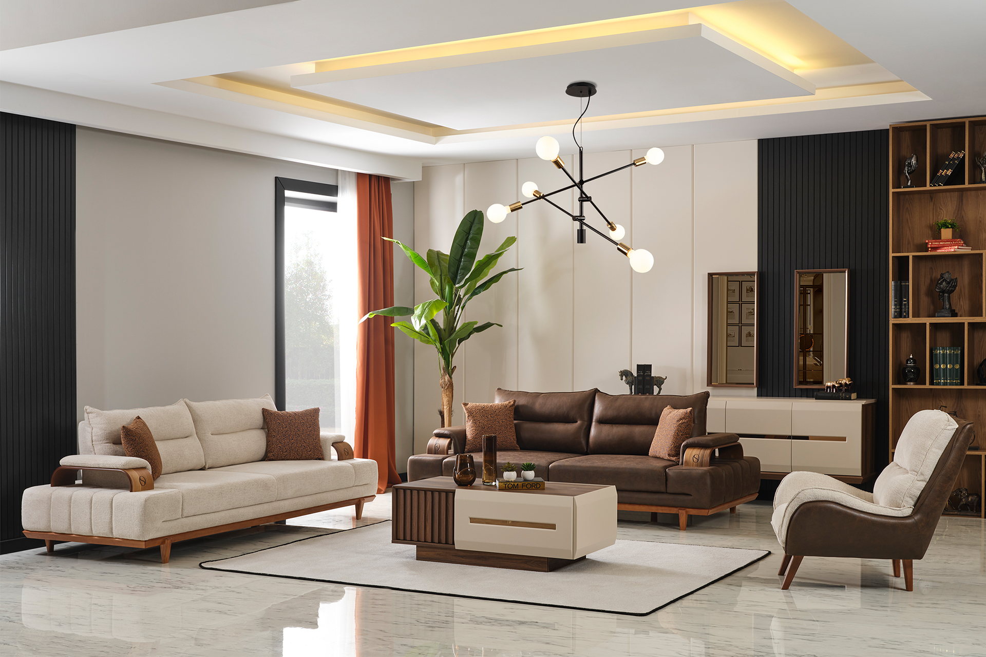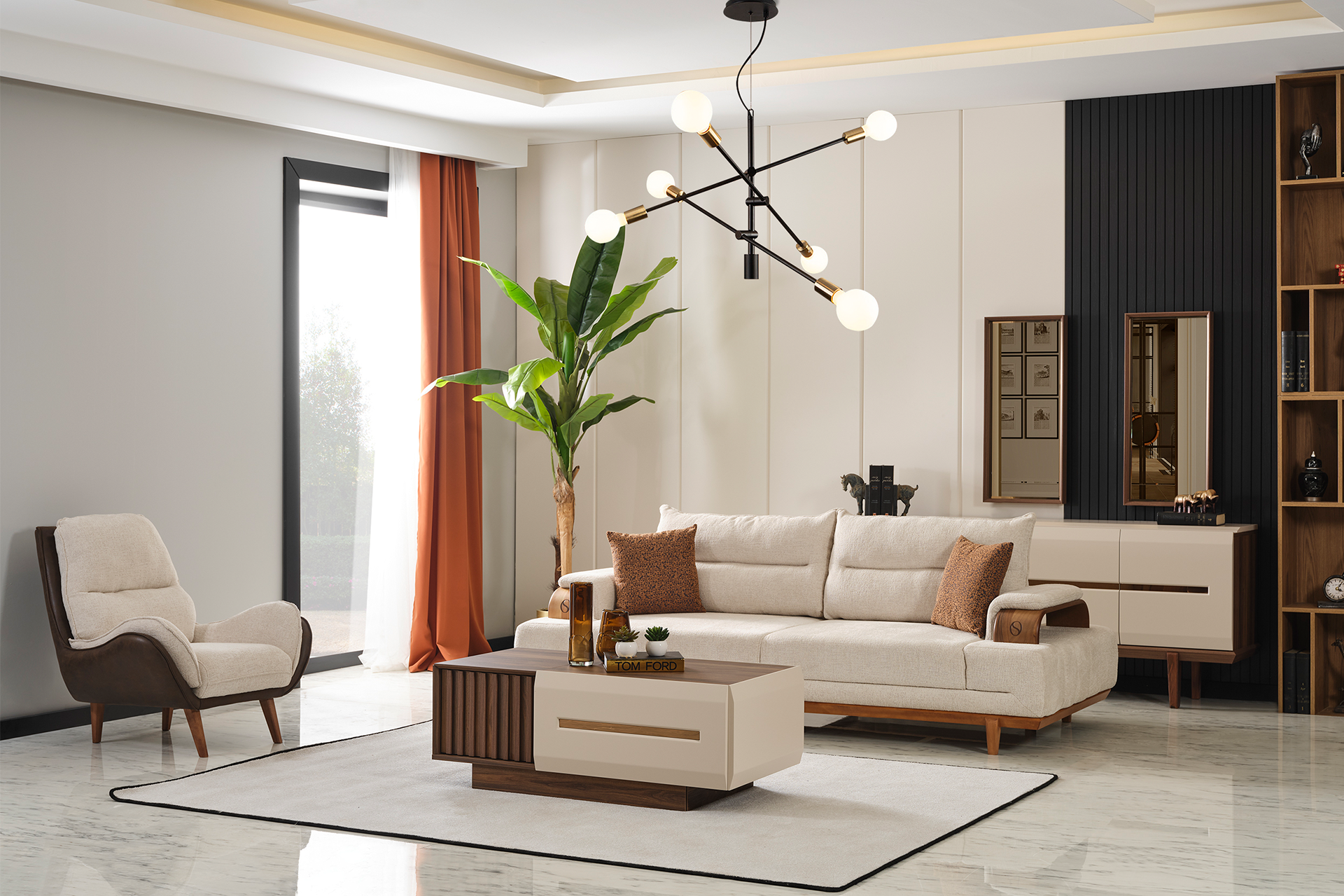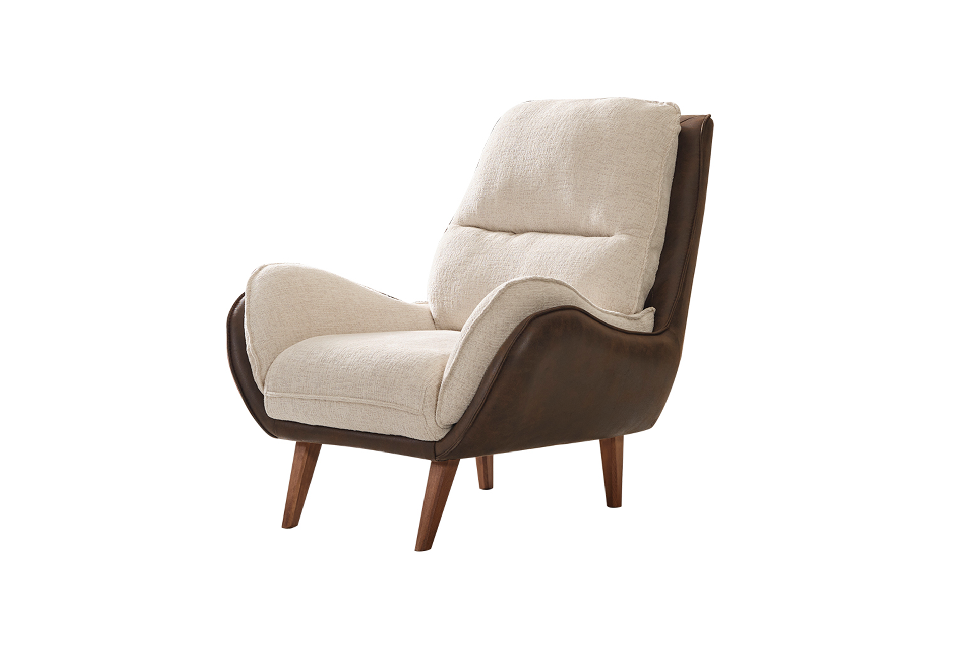 Tip: 1 loc. Materialul de acoperire: stofă boucle și stofă (similară cu pielea întoarsă); Finisaj: Ruya 03 + Keops 65 (crem + gri), Ruya 03 + Keops 54 (crem + maro); Dotări: picioare cu finisaj lemn; Dimensiuni: L85 x A85 x H90 cm (lungime x adâncime x înălțime).