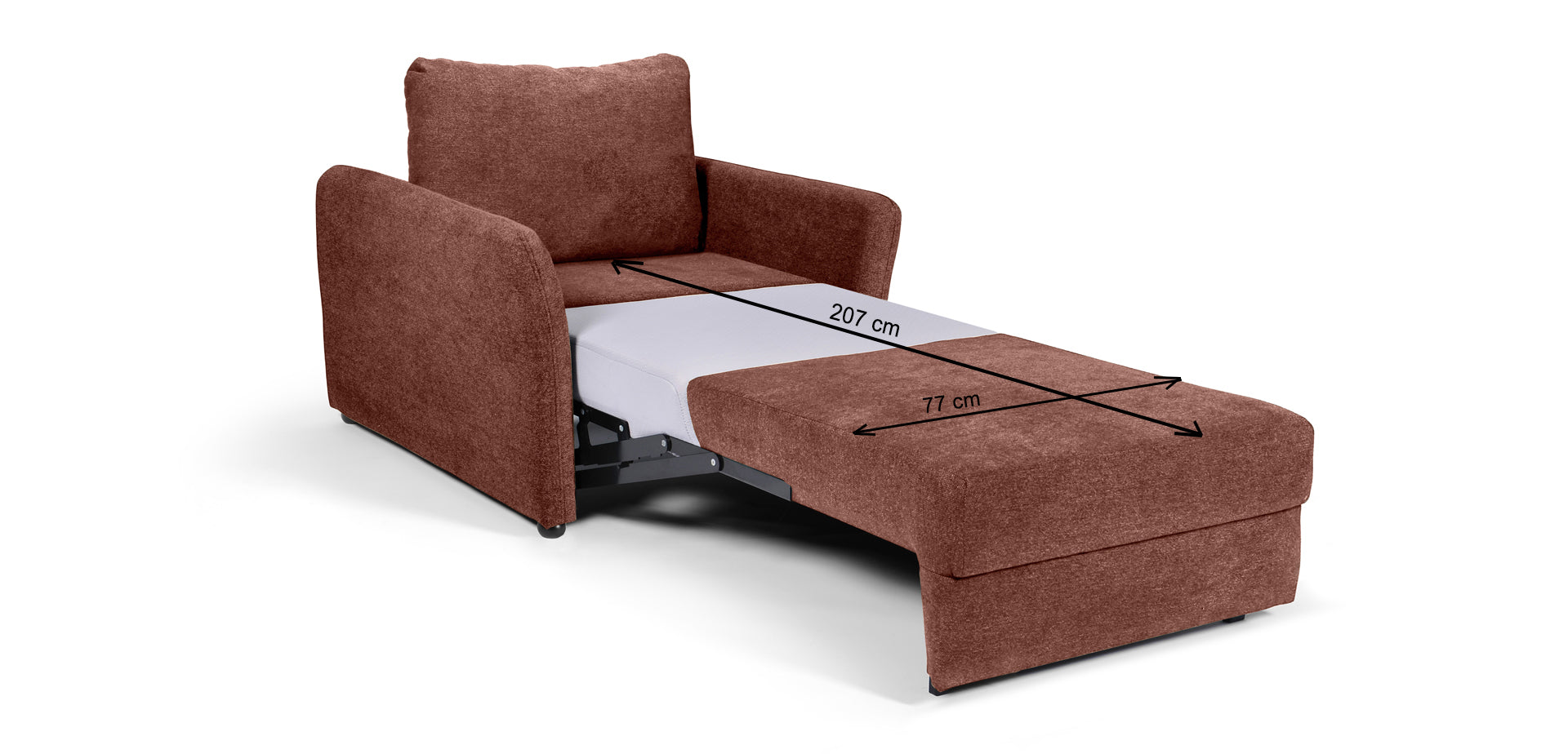Fotoliul extensibil AMY este ideal pentru spațiile mai puțin generoase, datorită dimensiunilor reduse.