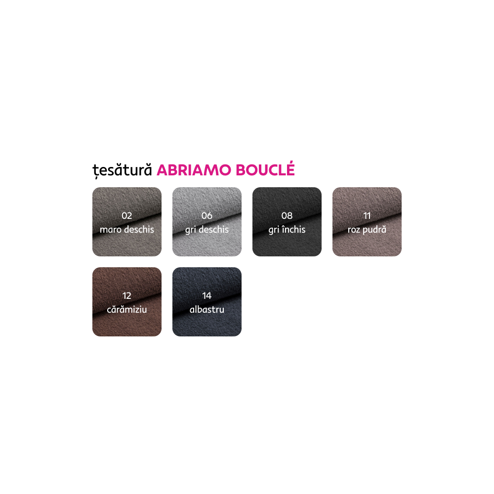 Material: ţesătură Abriamo Bouclé 01 Rezistenţa ţesăturii conform testului Martindale: 45.000 cicluri de frecare Dimensiuni (LxAxÎ): 75x68x76 cm Culoarea tapiţeriei: gri-maro Umplutură: arcuri ondulate + spumă PUR T30 Material picioare: metal Culoarea picioarelor: neagră Înălţimea compartimentului inferior faţă de podea: 17,5 cm Înălţime spătar: 35 cm Lăţime spătar: 41 cm Înălţime scaun: 44 cm Adâncime scaun: 50 cm Lăţime scaun: 53 cm Înălţime cotieră: 61 cm Capacitate de încărcare: 120 kg De design Tapiţat integral ţesătură greu inflamabilă Livrat dezasamblat Posibilitatea de a alege dintre 6 nuanţe ale ţesăturii Abriamo Bouclé la preţul de 1.135 Lei. Pentru comenzi personalizate este necesară plata unui avans de 10% din suma totală. După achitarea avansului, comanda dumneavoastră va intra în producţie. Termenul de livrare este de 6-8 săptămâni.