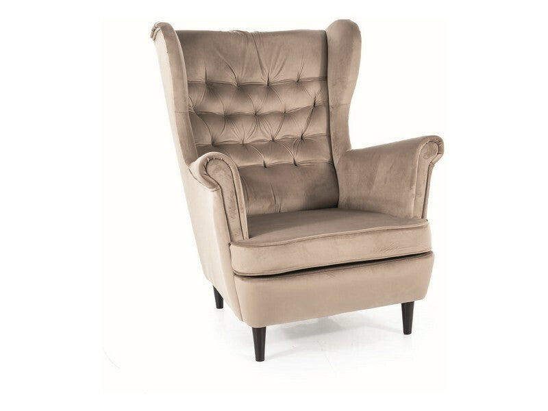 Fotliu, material din catifea, culoare: bej închis Bluvel 40, lemn, culoare: wenge.