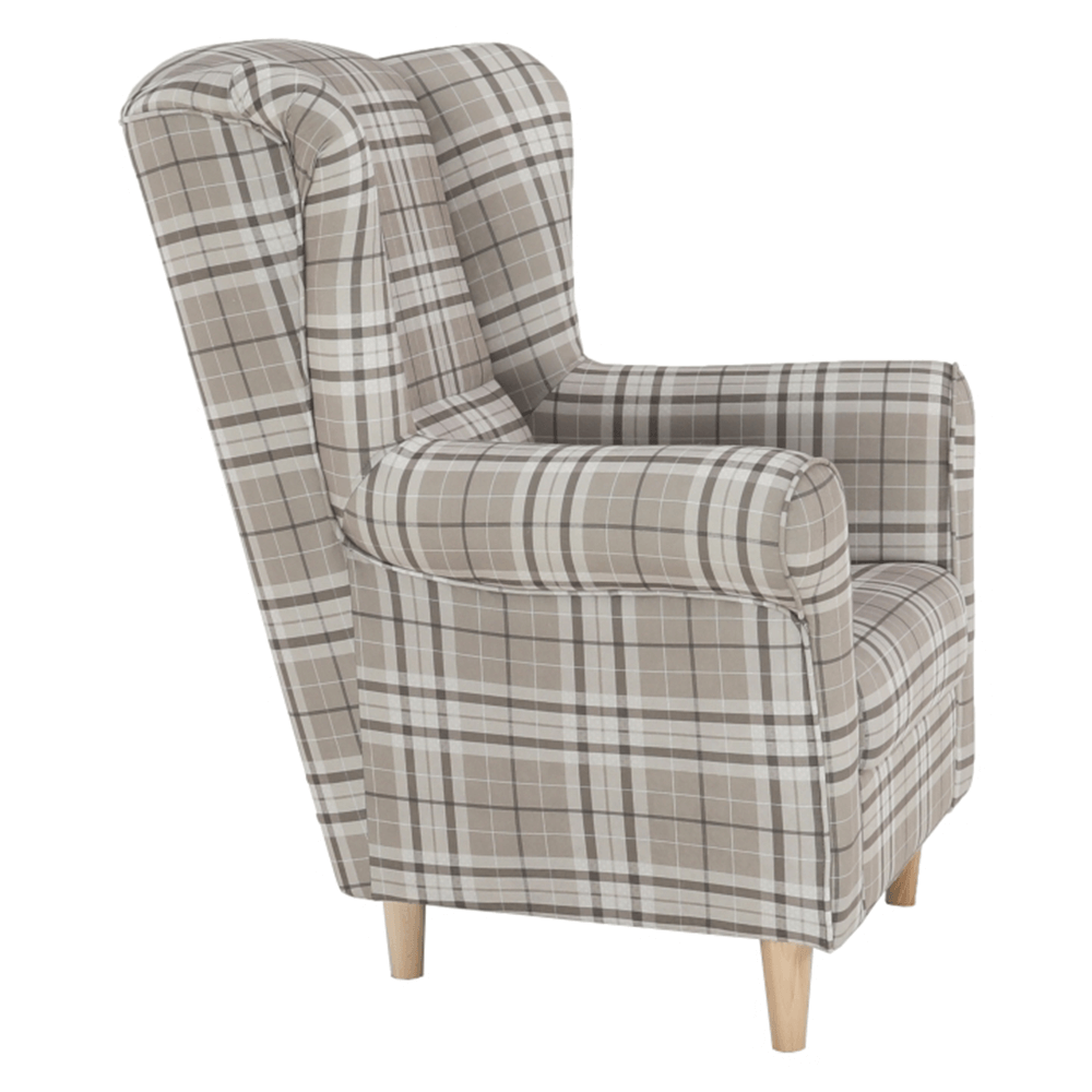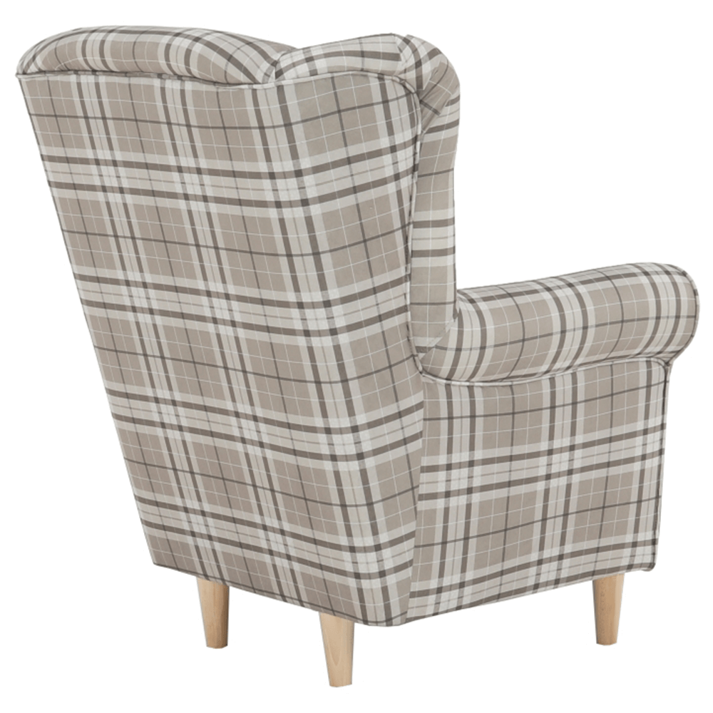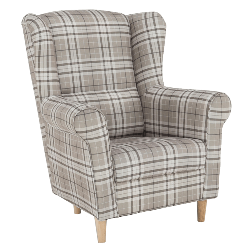Fotoliu CHARLOT în culoare maro carouri. Picioare de lemn, material fag.