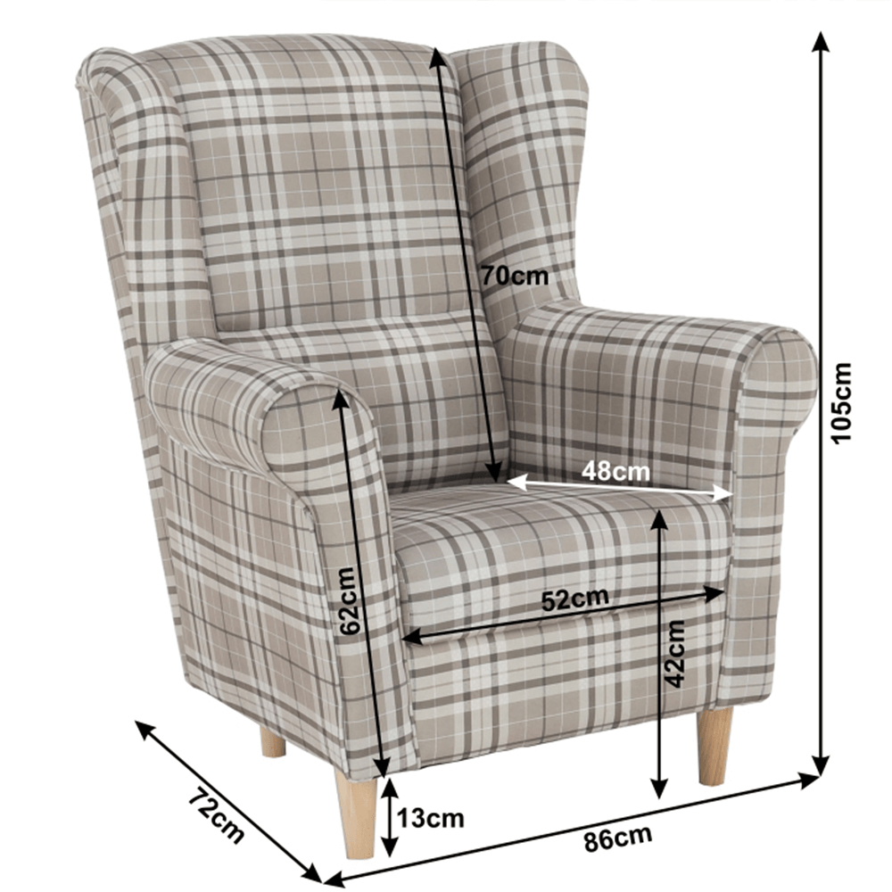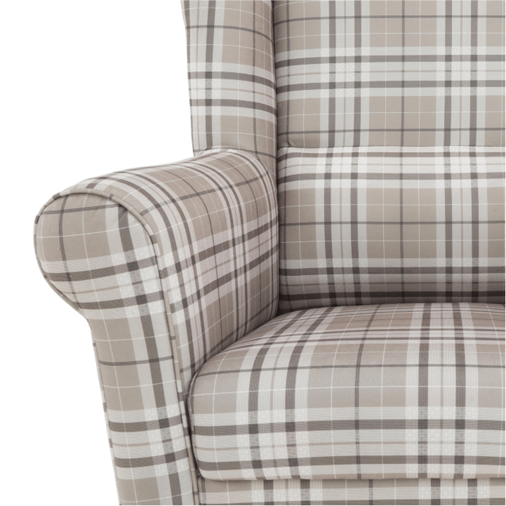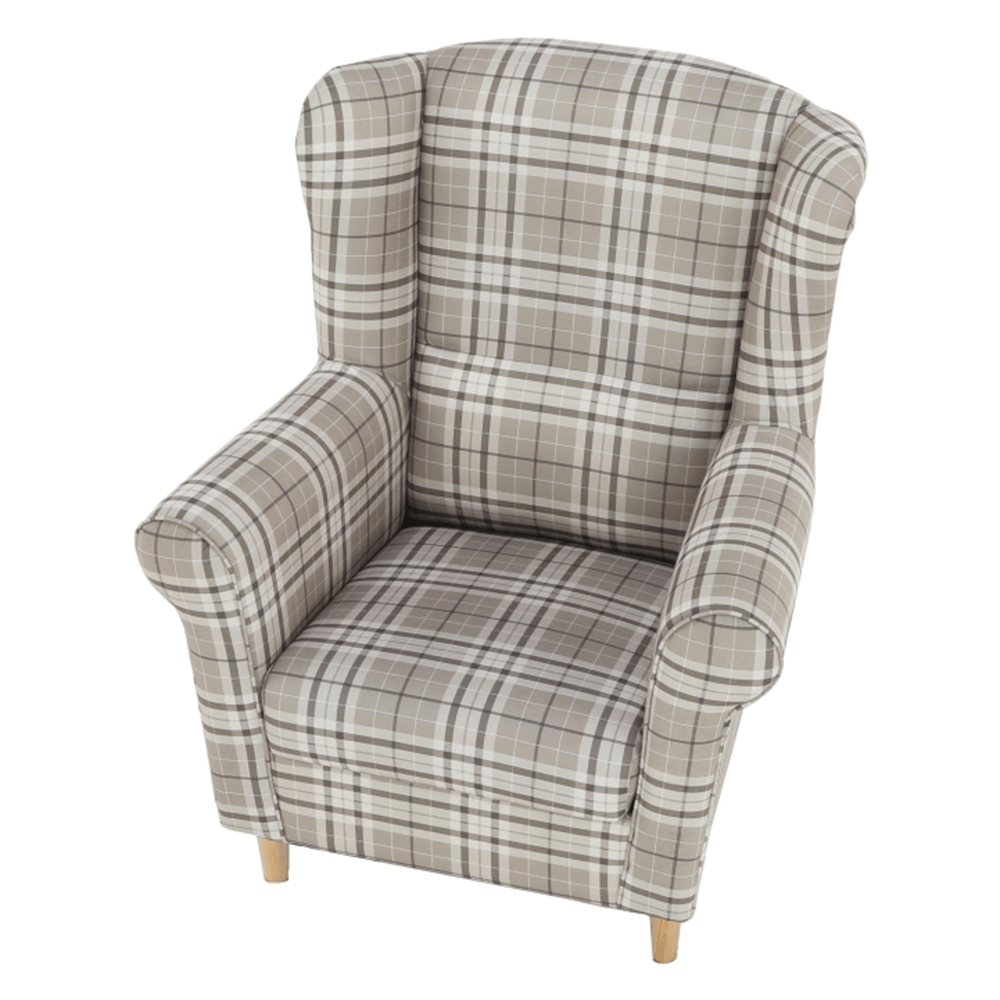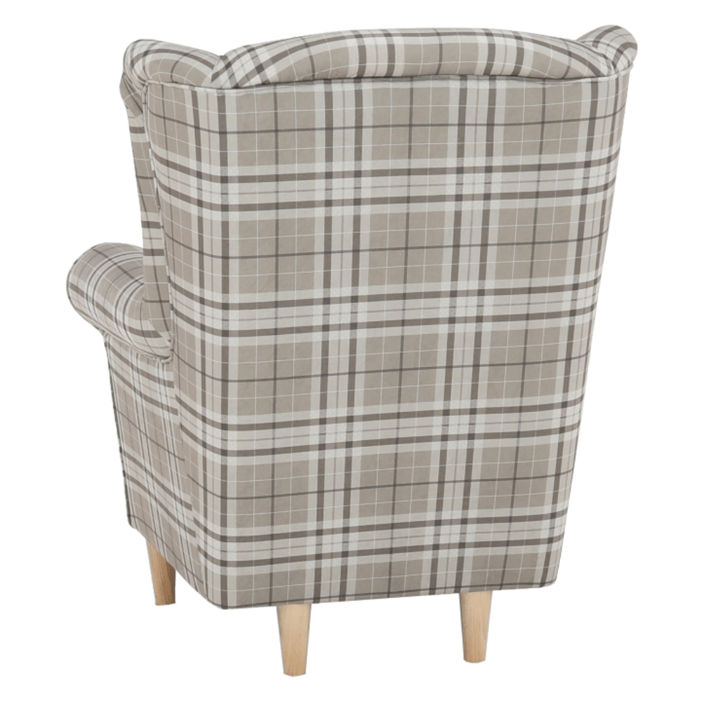 Fotoliu CHARLOT în culoare maro carouri. Picioare de lemn, material fag.