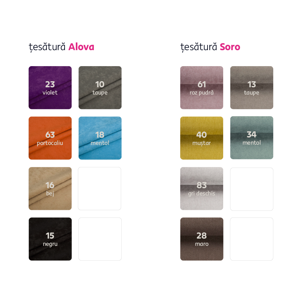 Puteţi cumpăra modele Charlot în materialului textil Alova la preţul de 1.469 sau în materialul textil Soro la preţul de 1.568. Pentru o comandă individuală, este necesar să plătiţi un avans de 10% din sumă. După achitarea avansului, comanda dvs. va fi dată în producţie. Durata de livrare este de 6-8 săptămâni.