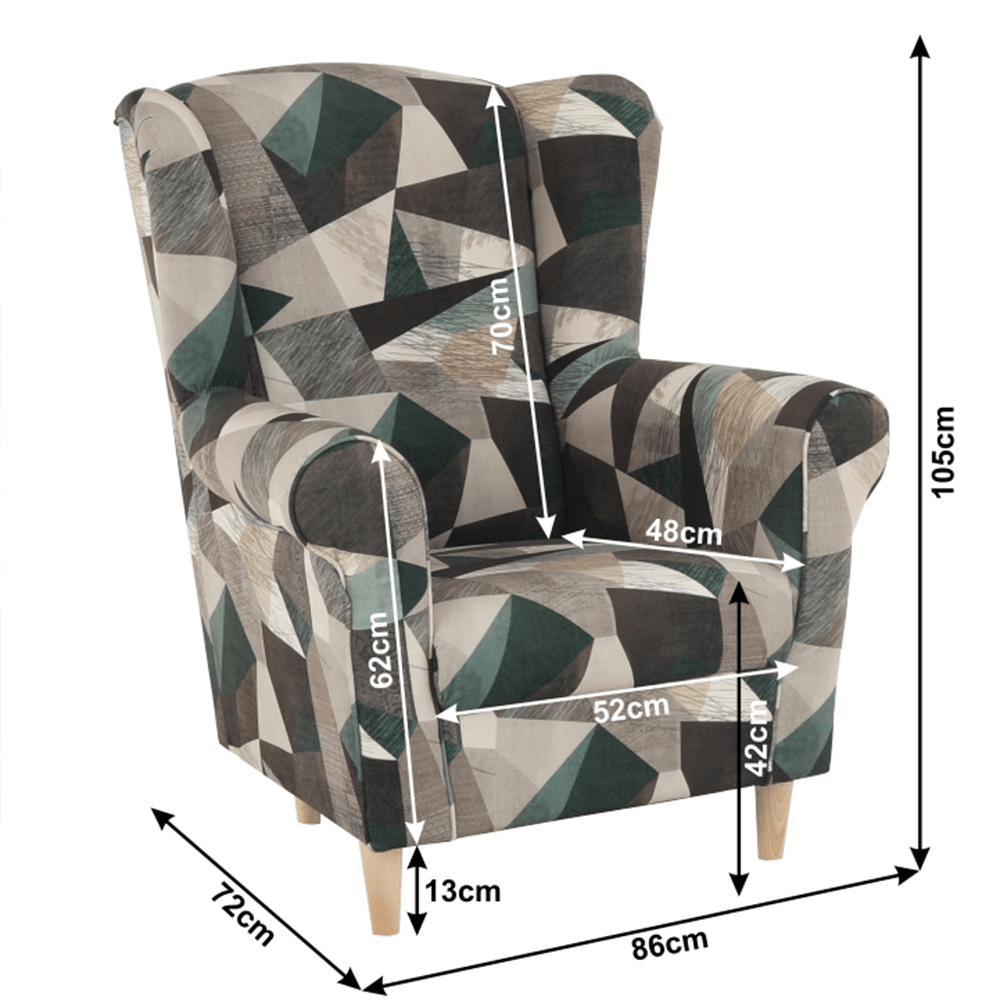 Picioare din lemn. Dimensiuni (LxPxH): 86x72x105 cm. Înălţimea spătarului: 70 cm. Înălţimea cotierei: 62 cm. Livrat nemontat.