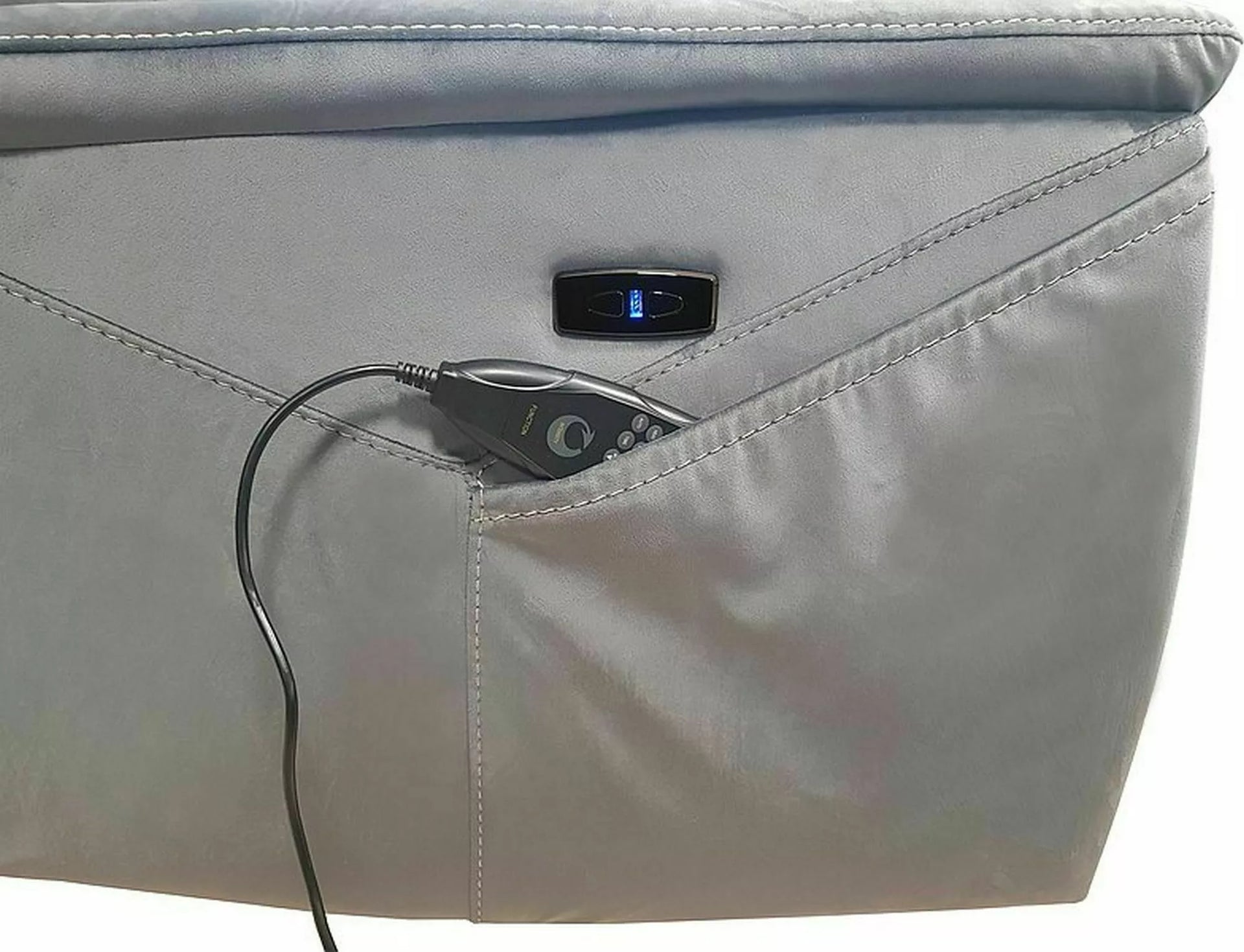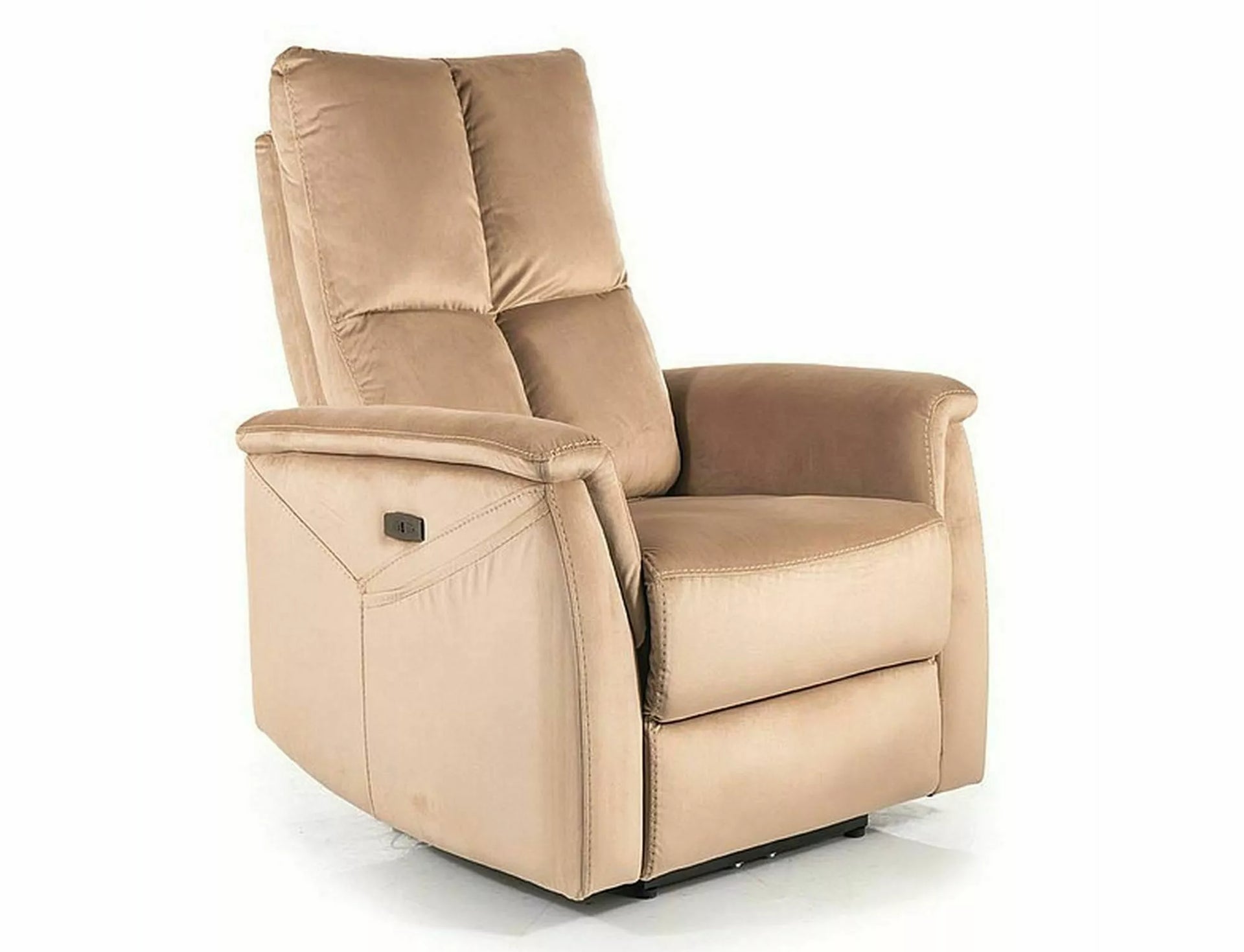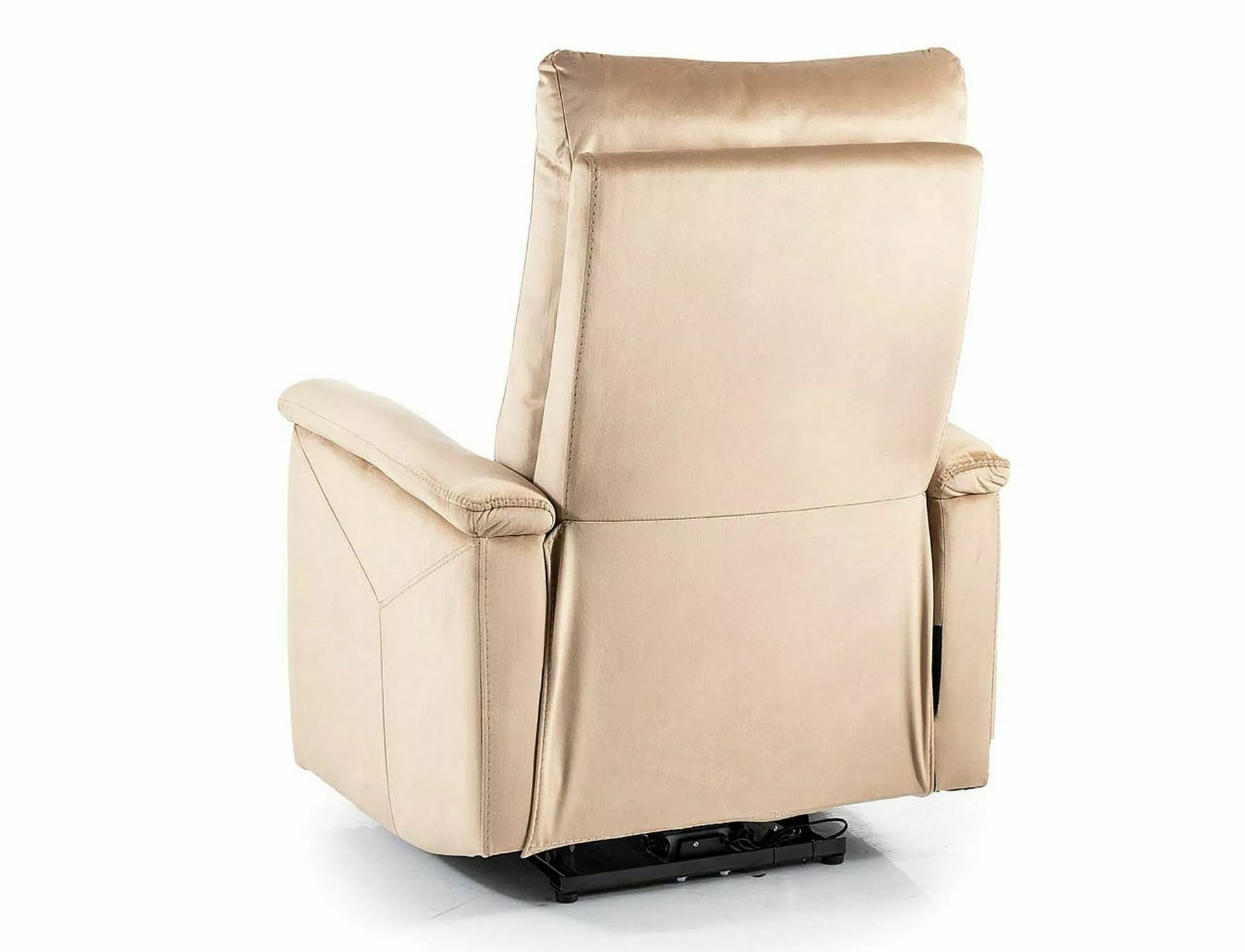 Fotliu înclinabil electric cu funcție de masaj, țesătură de catifea: Bluvel, culori: bej 28. Control înclinabil printr-un panou pe partea dreaptă a fotoliului. Panoul este echipat suplimentar cu un port USB iluminat din spate. Funcții de masaj reglabile cu ajutorul unei telecomenzi cu fir, opțional: timp de funcționare, selectarea zonei și intensității masajului, încălzirea secțiunii lombare. Partea laterală a fotoliului are un buzunar practic.