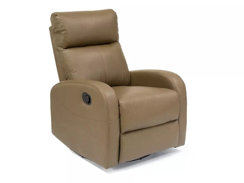 Fotliu pliabil cu funcție de balansare, piele sintetică Buffalo, culoare: măsline 10. Baza permite rotirea scaunului la 360 de grade și balansarea (adică leagăn) doar în poziția pliată.