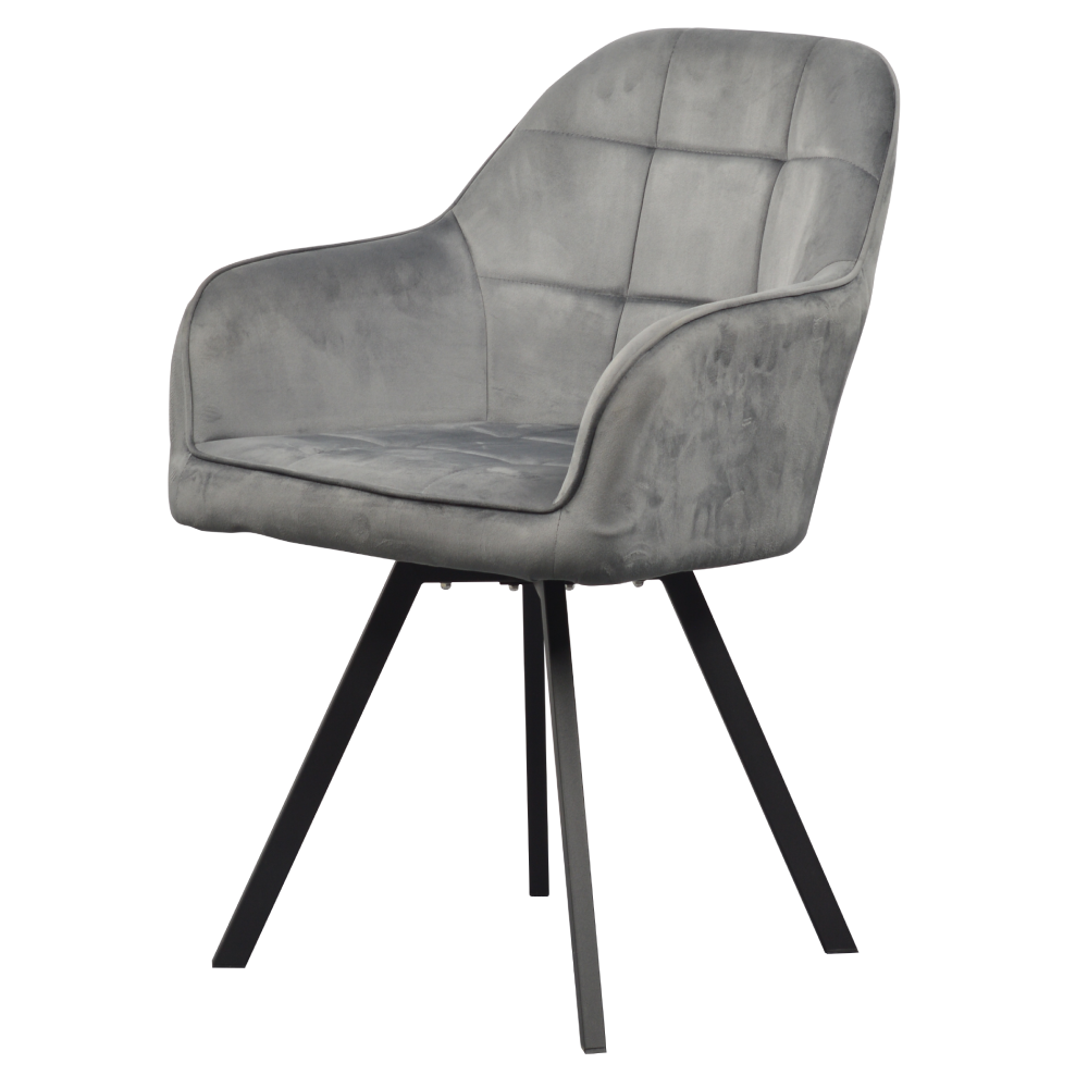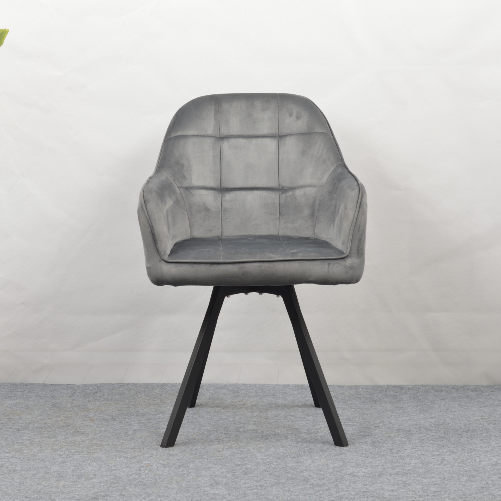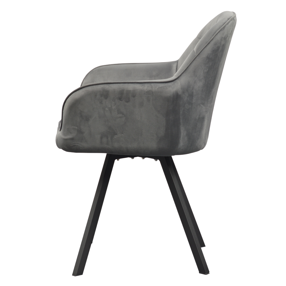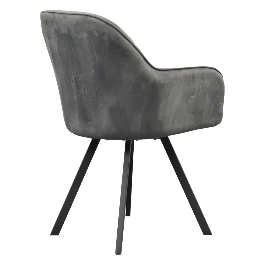 Material: ţesătură Velvet/metal Rezistenţa ţesăturii la frecare conform testului Martindale: 85 000 de cicluri de frecare Culoare: gri închis/neagră Dimensiuni (lxAxh): 57x59x88 cm Înălţime părţii de şezut: 51 cm Adâncimea părţii de şezut: 45 cm Lăţimea părţii de şezut: 53 cm Lăţime spătar: 47 cm Înălţime spătar: 42 cm Portanţă: 100 kg Greutate: 6,35 kg Scaun pivotant De design Matlasat Livrat dezasamblat