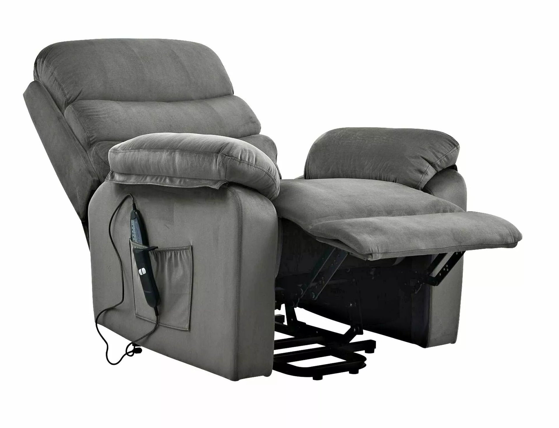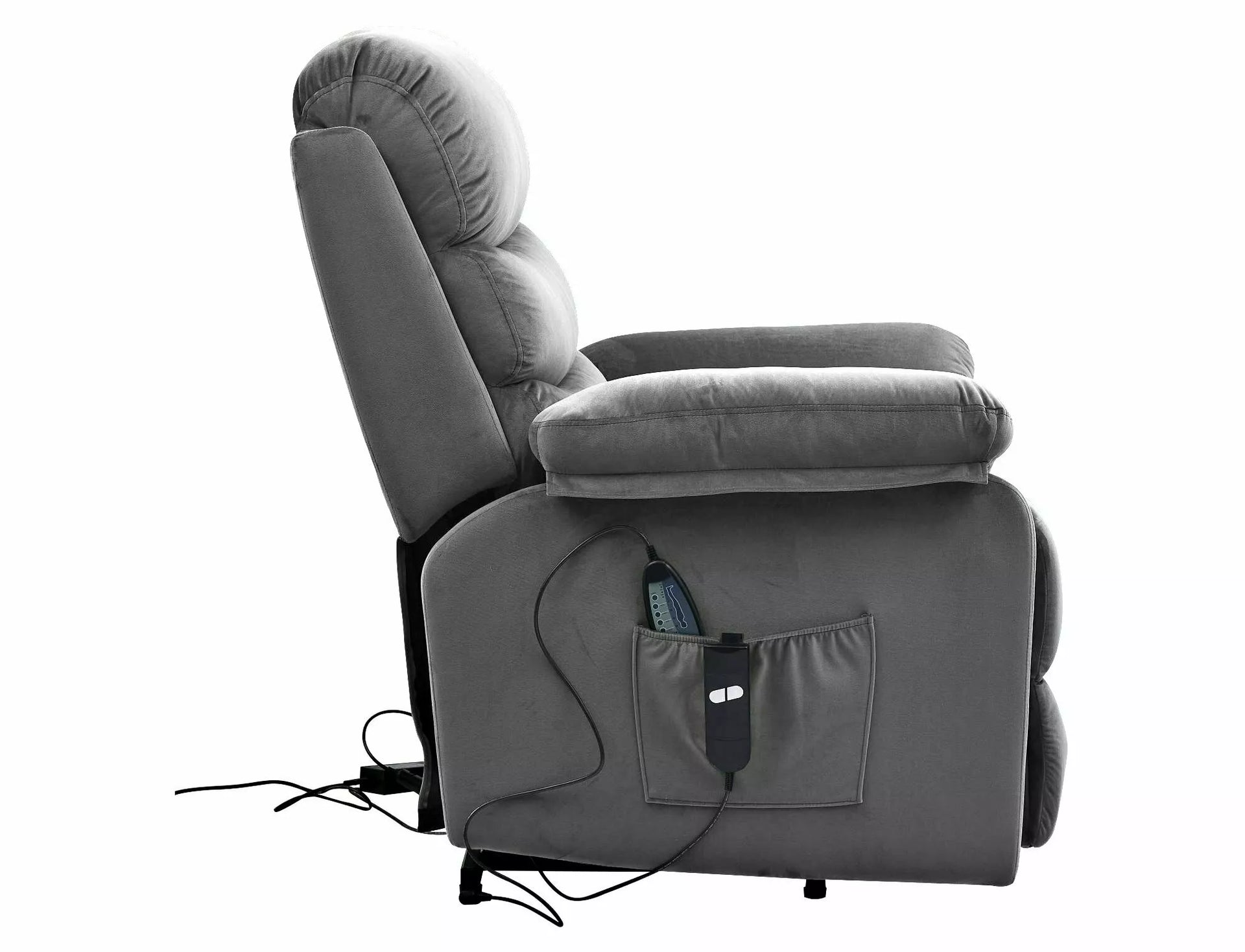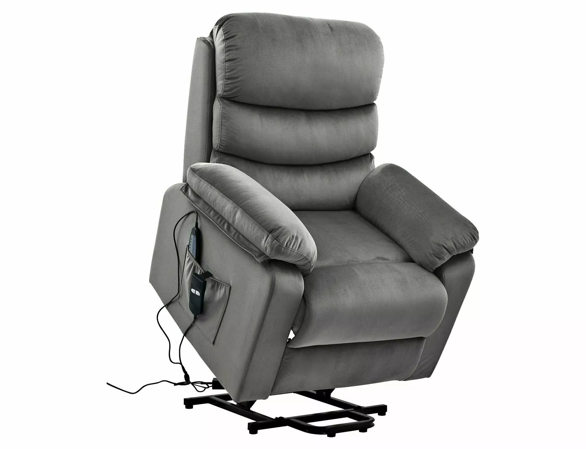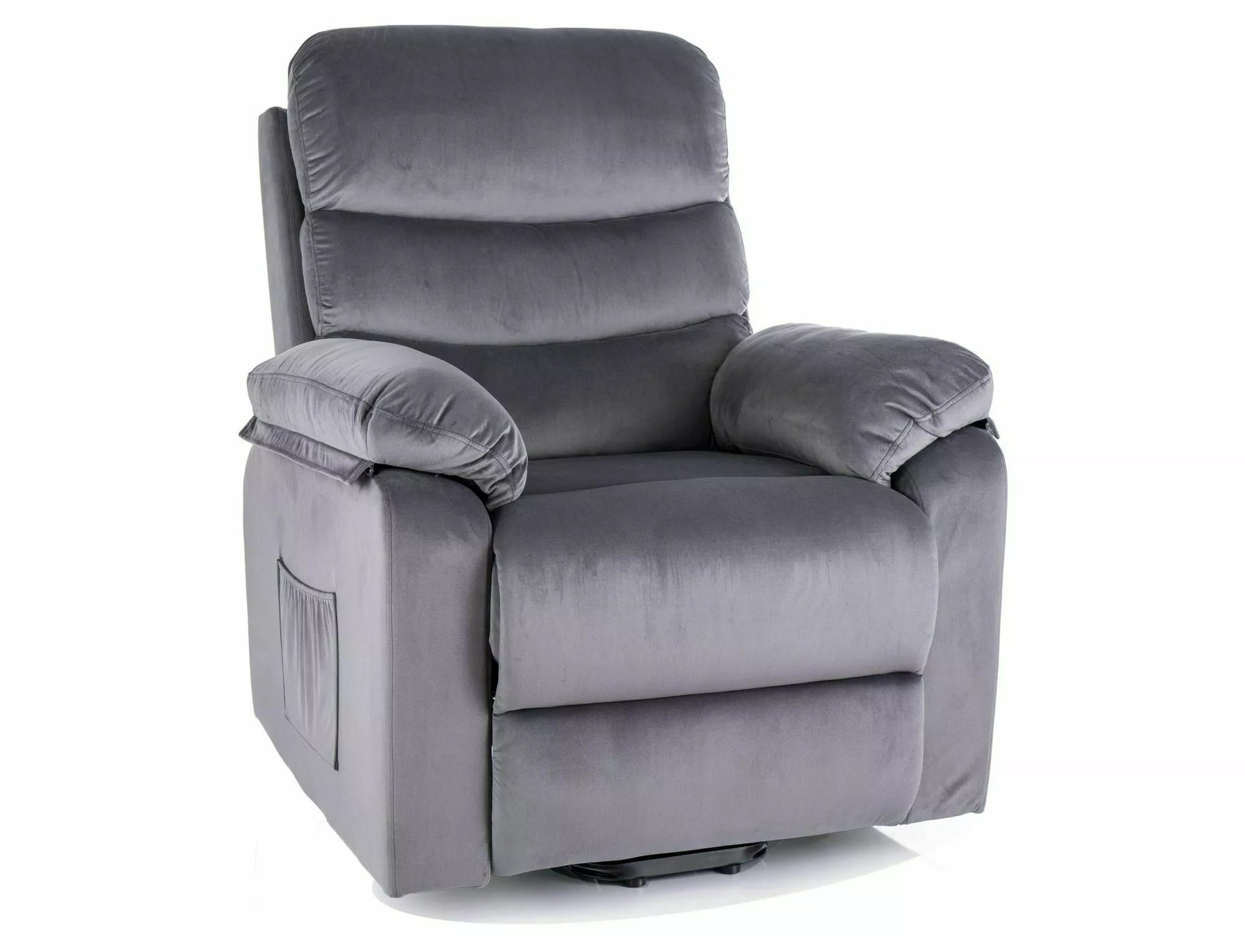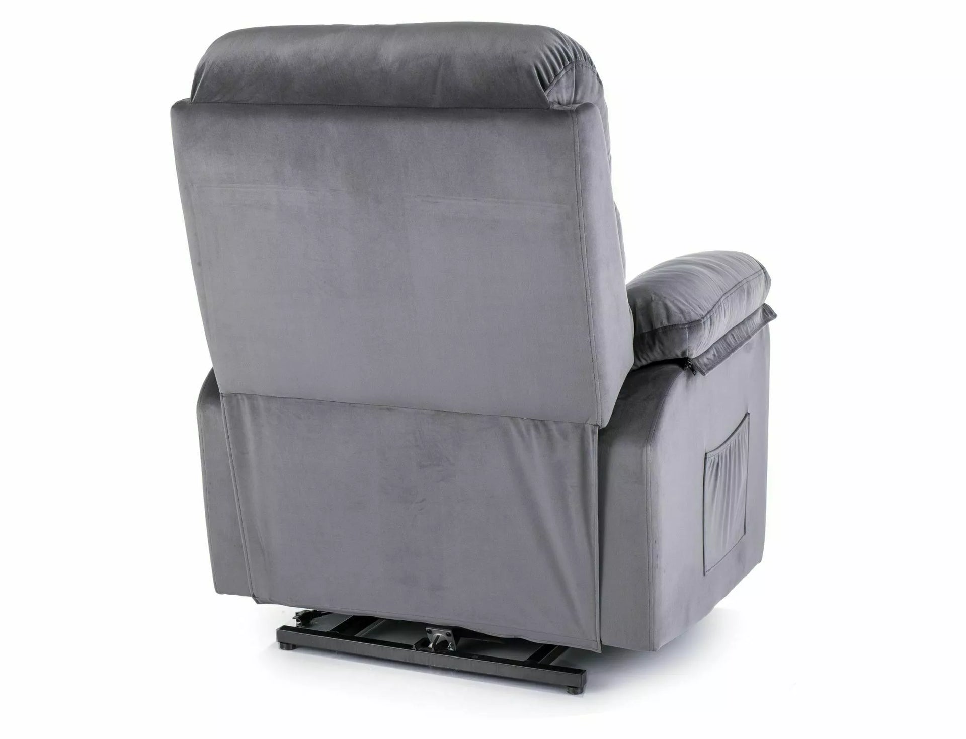 Fotiu pliabil, tapițerie: țesătură catifea Bluvel, cadru: metal, culoare: 14 gri / negru. Desfasurare electrica, functie: verticalizare, masaj.