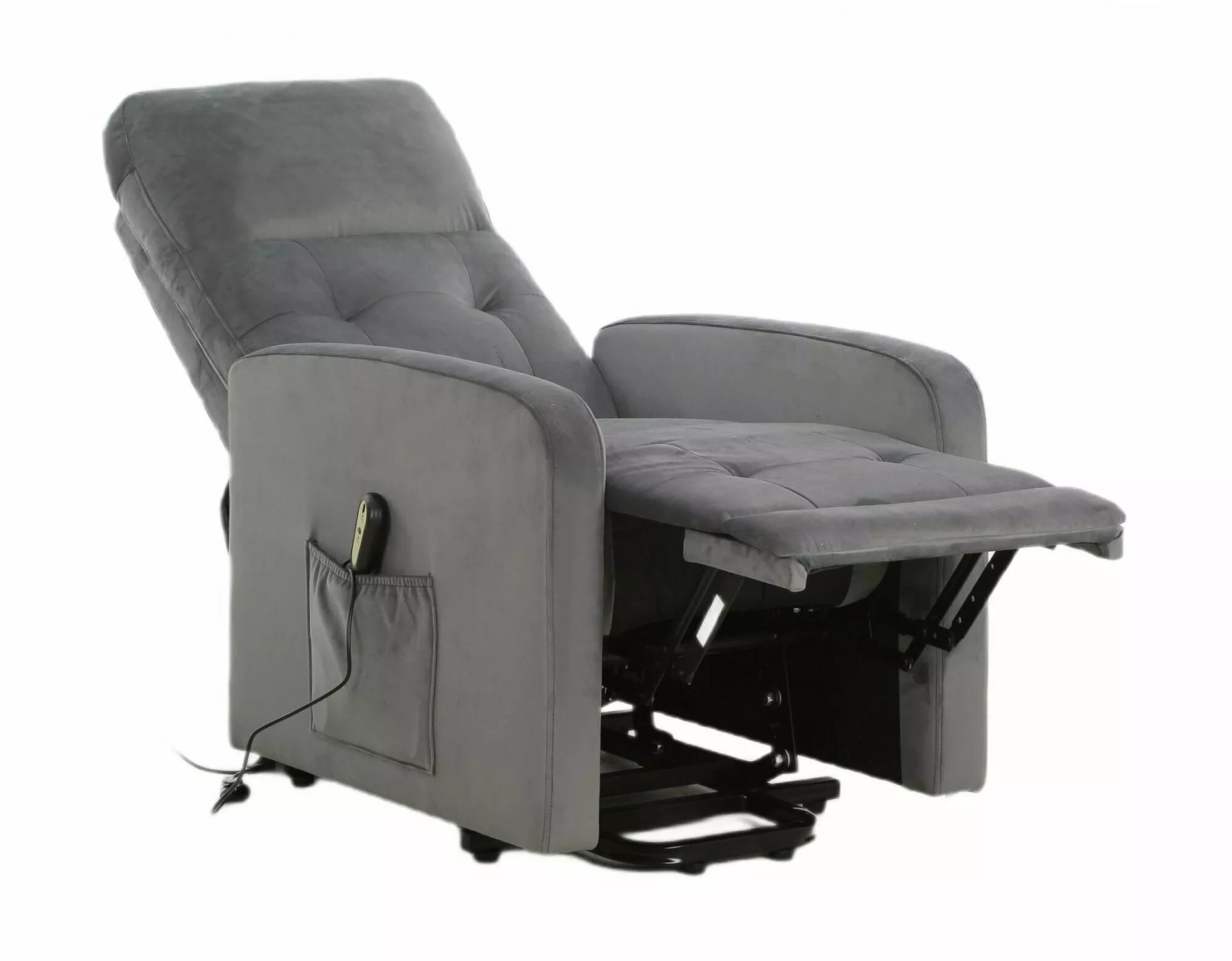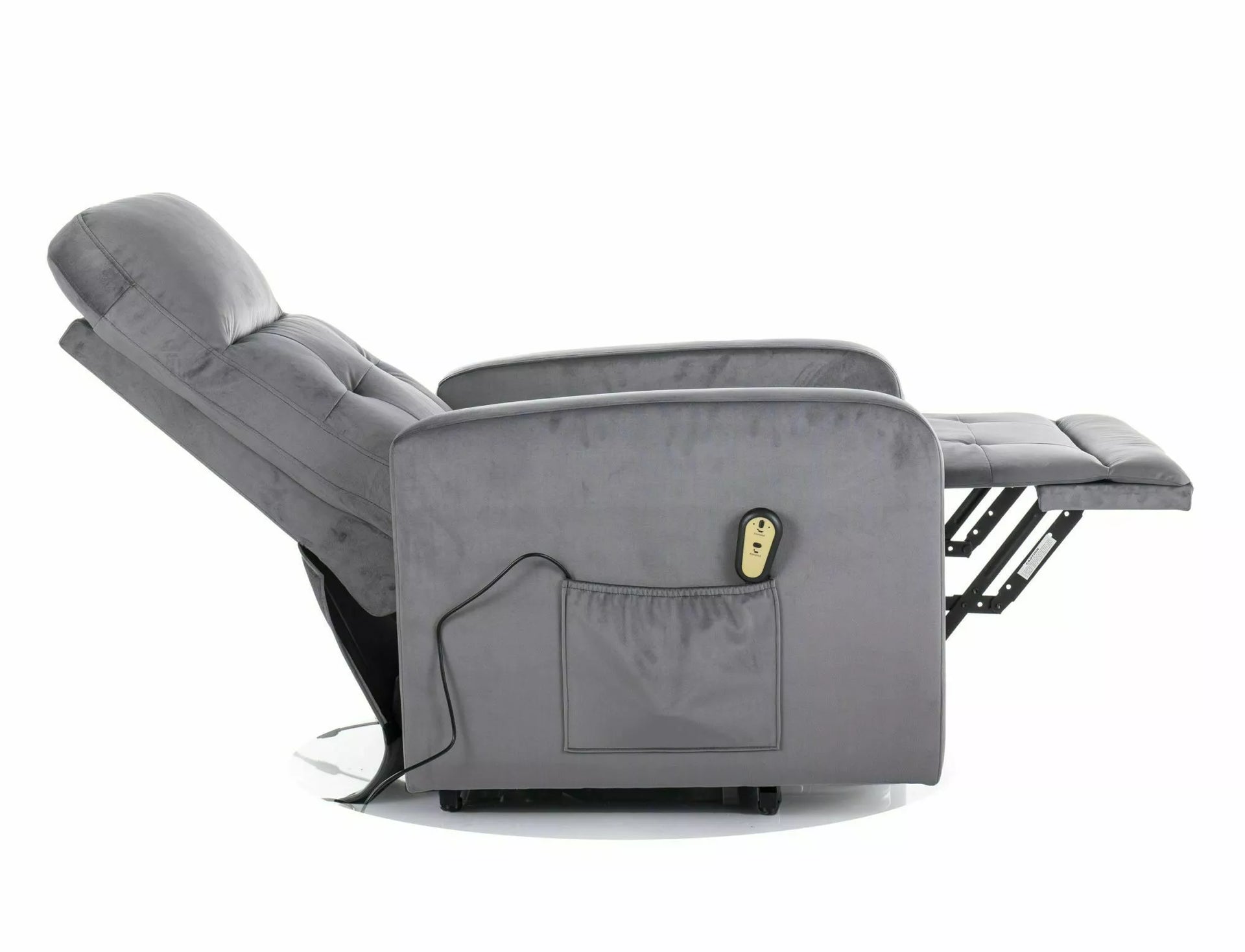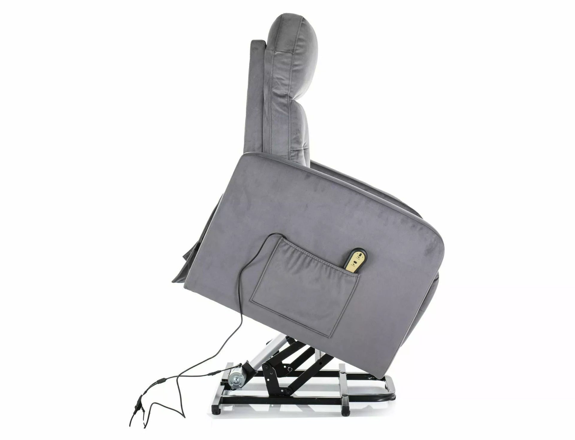 Fotiu pliabil, tapițerie: țesătură catifea Bluvel, cadru: metal, culoare: 14 gri / negru. Desfasurare electrica, functie: verticalizare.