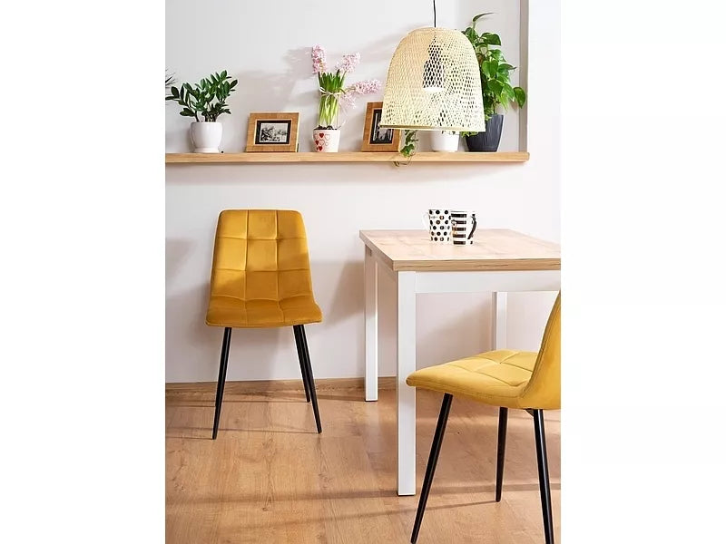 Masa, blat: placă laminată, culoare: stejar lancelot, cadru: MDF, culoare: alb mat