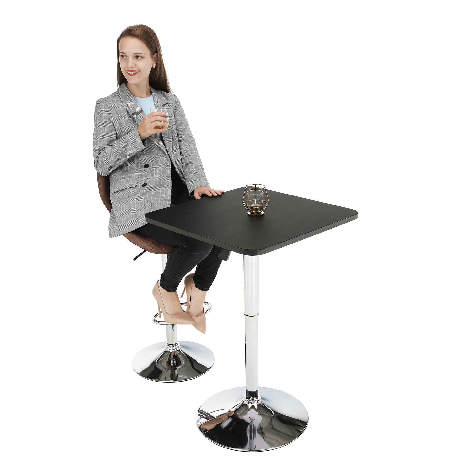 Masă pentru bar, reglabilă în înălţime FLORIAN în nuanţa negru. Material MDF/crom.