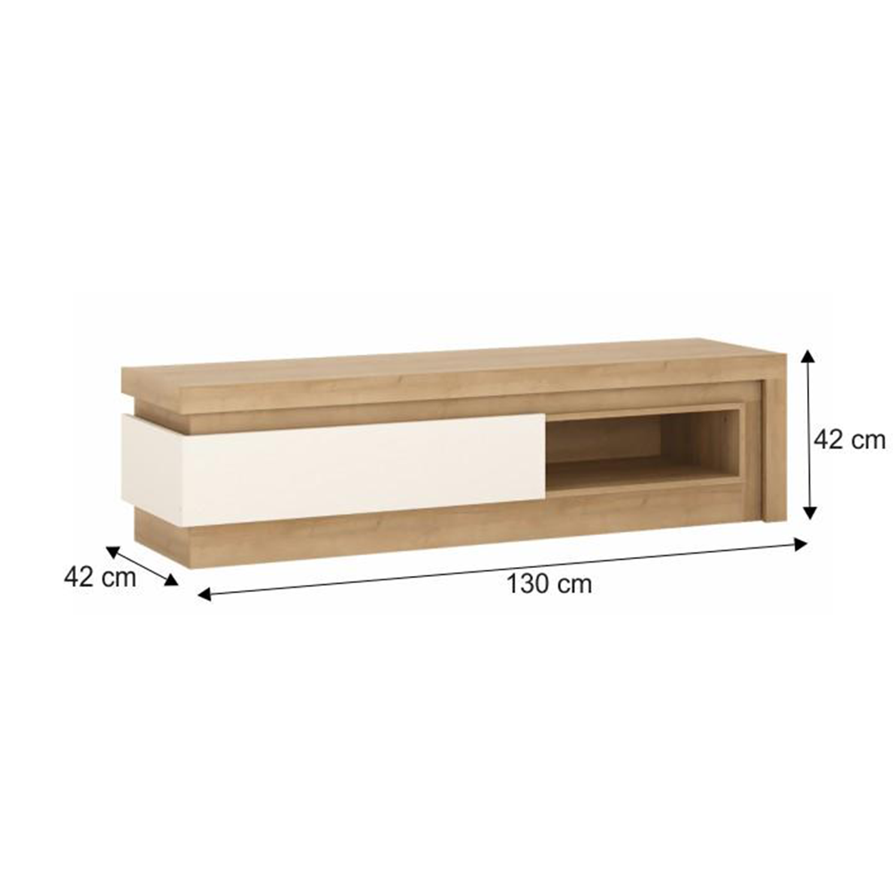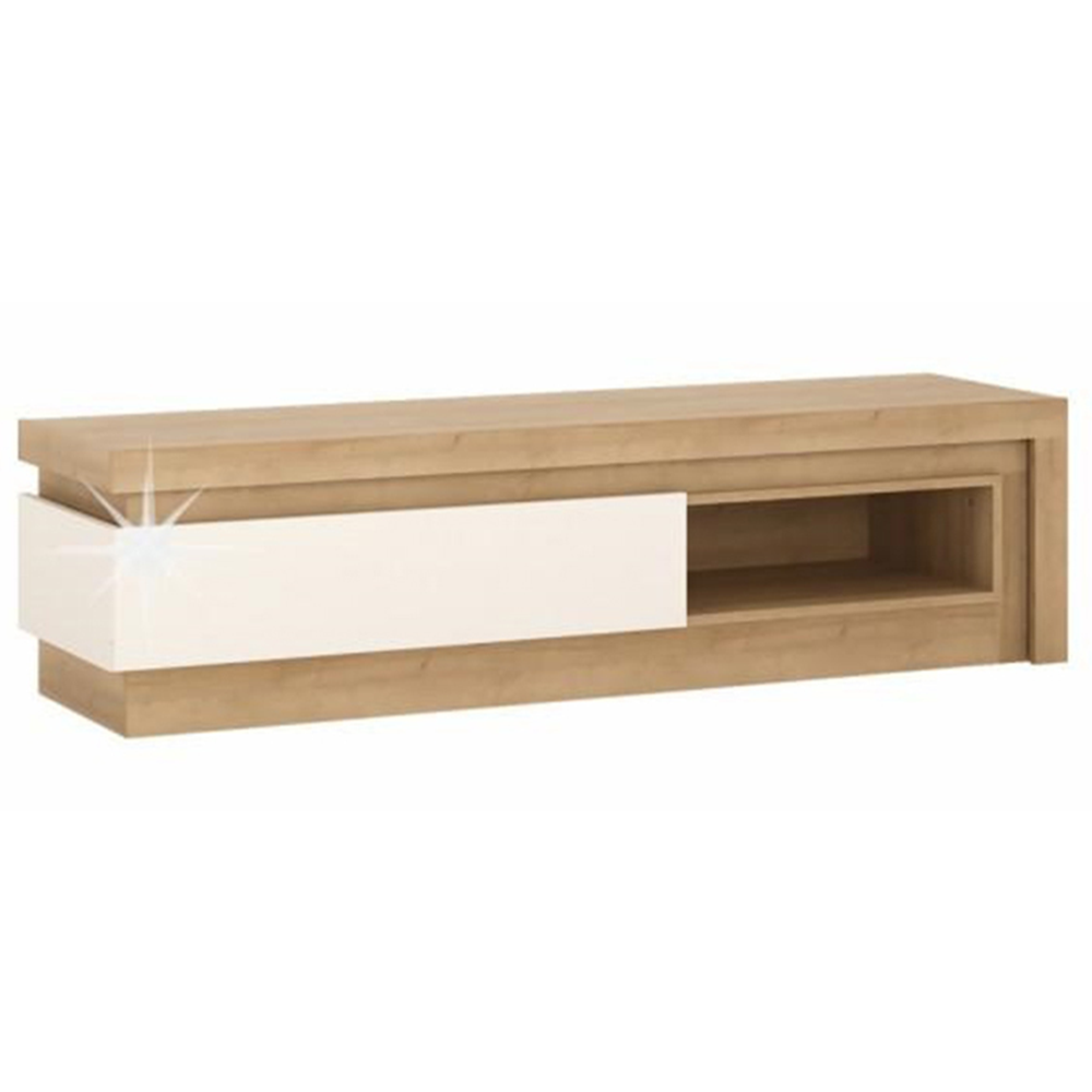 Masă RTV 02, stejar riviera/albă cu extra strălucire, LEONARDO