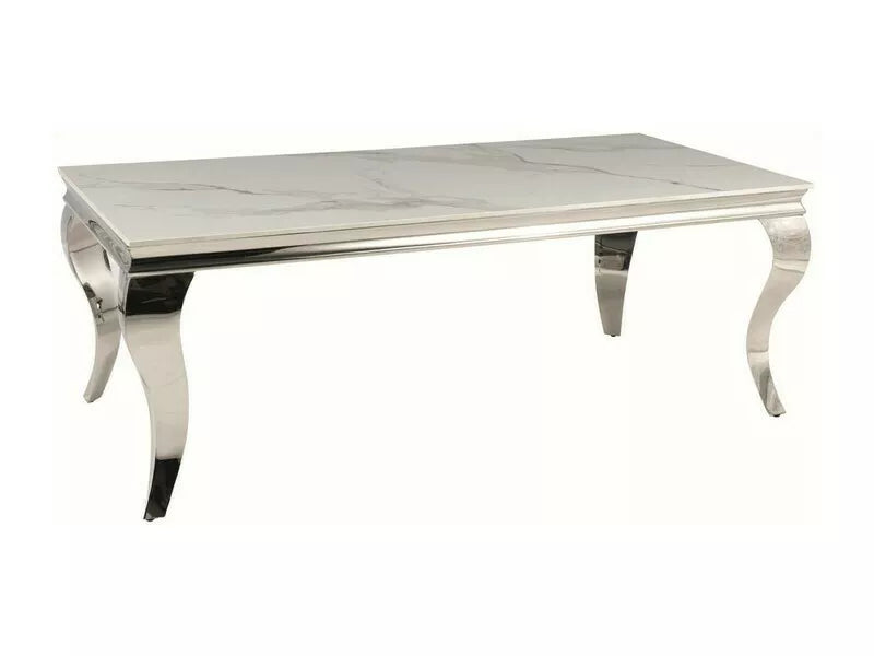 Masuta de cafea, blat: ceramica CALACATTA, cadru: otel inoxidabil, culoare: alb/crom.